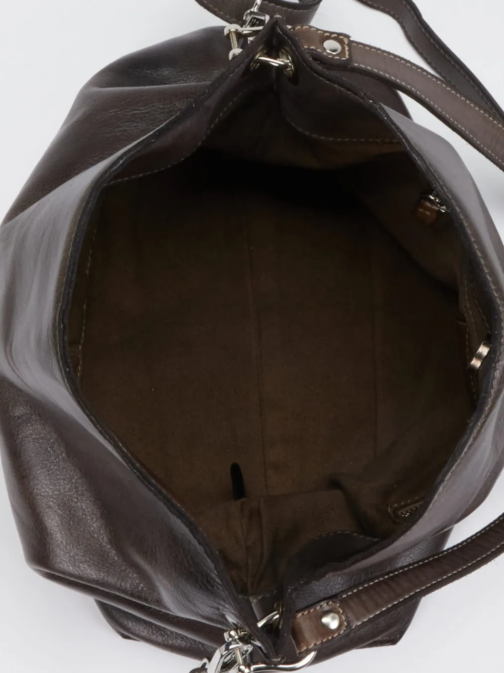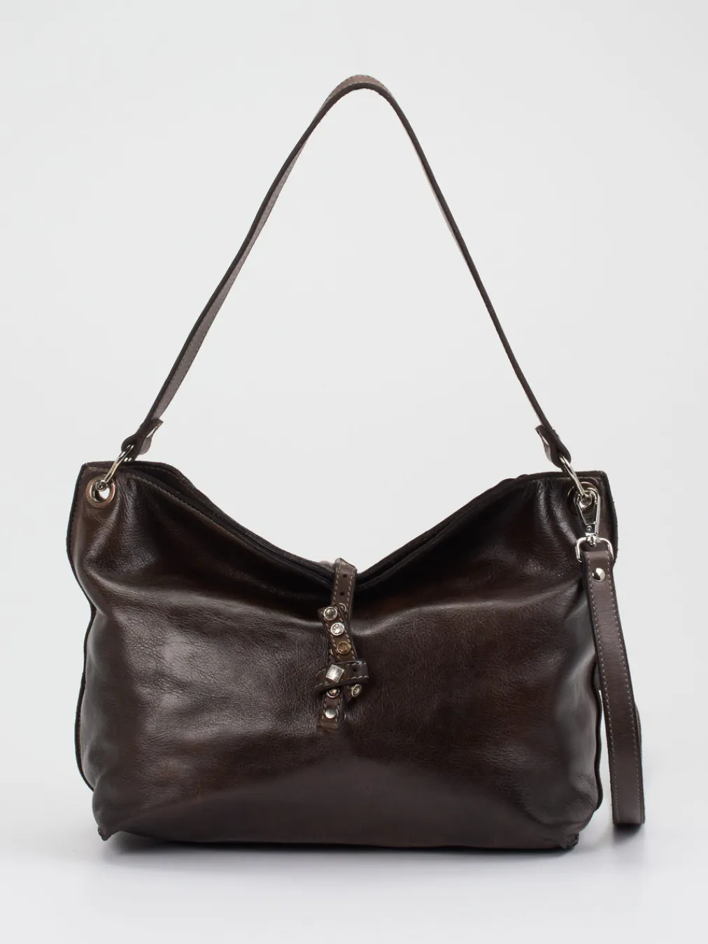 Diese dunkelbraune Umhängetasche der Marke Alchimia aus edlem Kalbleder überzeugt durch ihre klare Form und die antikisierte Ausstrahlung des Materials. Das robuste Leder zeigt eine feine Narbung und verleiht der Tasche eine wertige Haptik. Genügend Platz für Ihre Essentials enthält der geräumige Innenraum. Dezente Details wie der nietenbesetzte Riemen und eine zurückhaltende Farbgebung machen die Tasche zu einem vielseitigen Accessoire für alle Gelegenheiten. – Feines, antikisiertes Kalbleder in Dunkelbraun – Lässiges Design – Vielseitig kombinierbar und zeitlos – Hochwertige Verarbeitung für langlebige Freude – Maße: 27 x 40 x 16 cm – Innen: ein Reißverschlussfach, zwei Steckfächer – Schultergürtel: max. ca. 115 cm, abnehm- und verstellbar – Verschluss: Druckknopf Für eine nachhaltige Pflege empfehlen wir die Collonil Waterstop Colour Pflegecreme. Sie schützt das Leder vor äußeren Einflüssen, erhält die Geschmeidigkeit und frischt die Farbe dezent auf.