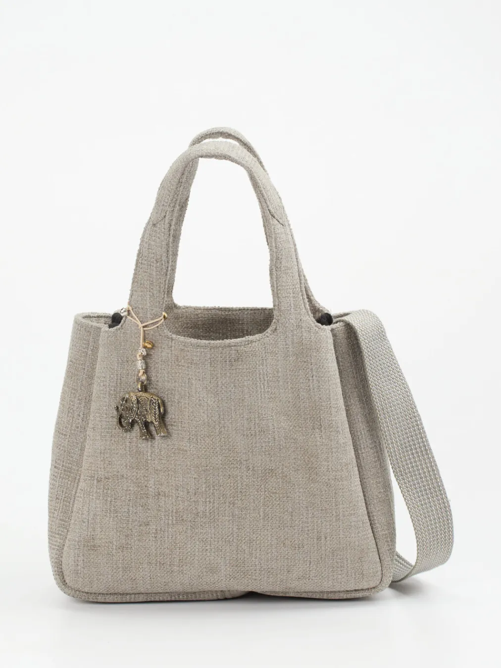Struktur mit Stil.ANOKHI zeigt mit dieser Damen-Shopper Bag eine modische Begleitung für Alltag und Büro. Ideal für strukturierte Tagespläne: Der geräumige Shopper aus Textil präsentiert sich mit grober Webstruktur in Steingrau – eine natürlich anmutende Textur mit dezentem Bouclé-Charakter. Die trapezförmige Silhouette, goldfarbene Karabinerverschlüsse sowie ein filigraner Zieranhänger in Elefantenform setzen stilvolle Akzente. Praktische Doppelhenkel und ein verstellbarer Riemen bieten flexible Tragemöglichkeiten. Im Trend mit Quiet Luxury, betont der Look dezente Eleganz. Kombiniert sich hervorragend mit hellen Naturstoffen. Der Anspruch: reduzierter Chic mit sanfter Textilästhetik – ganz ANOKHI.