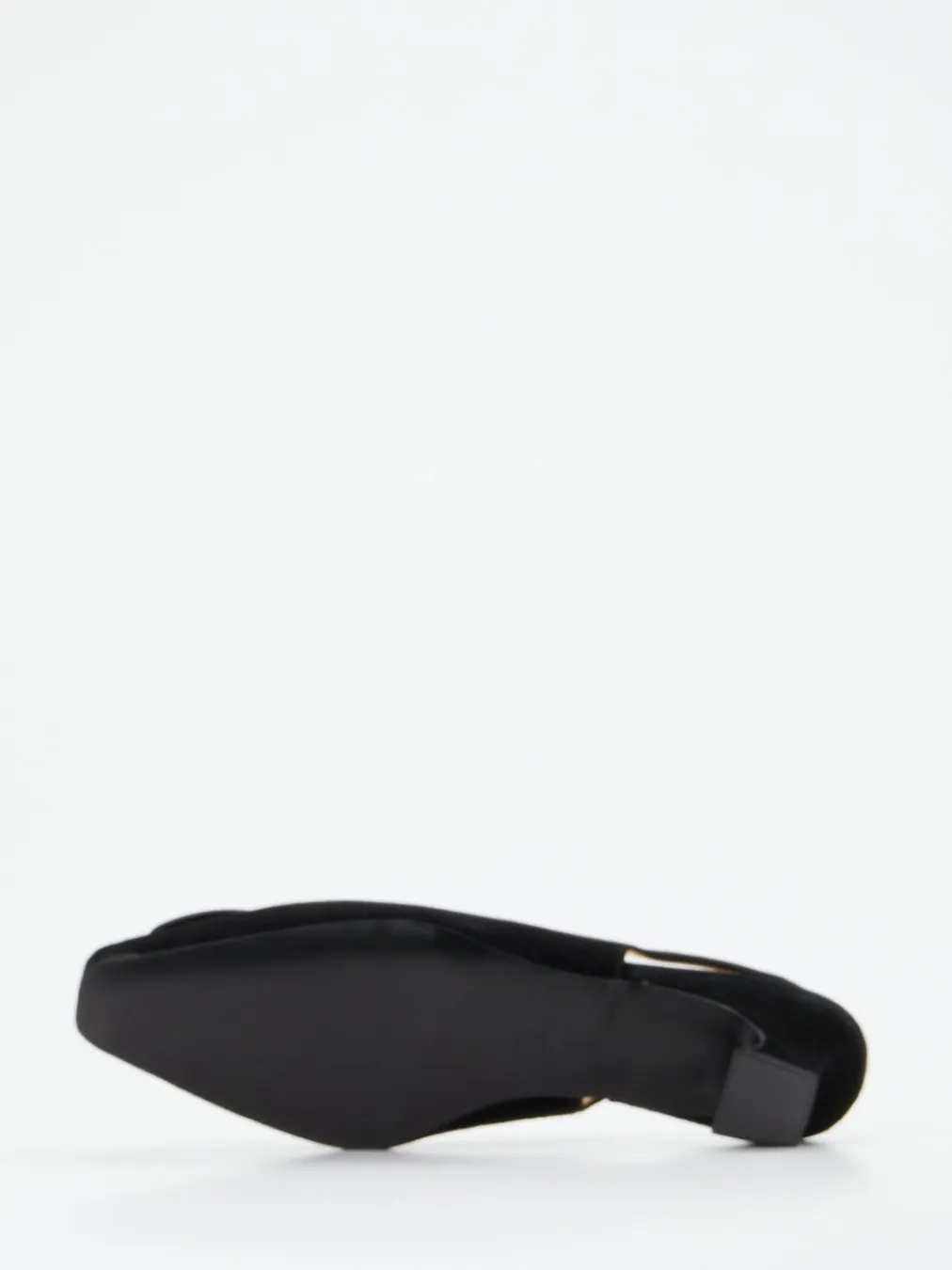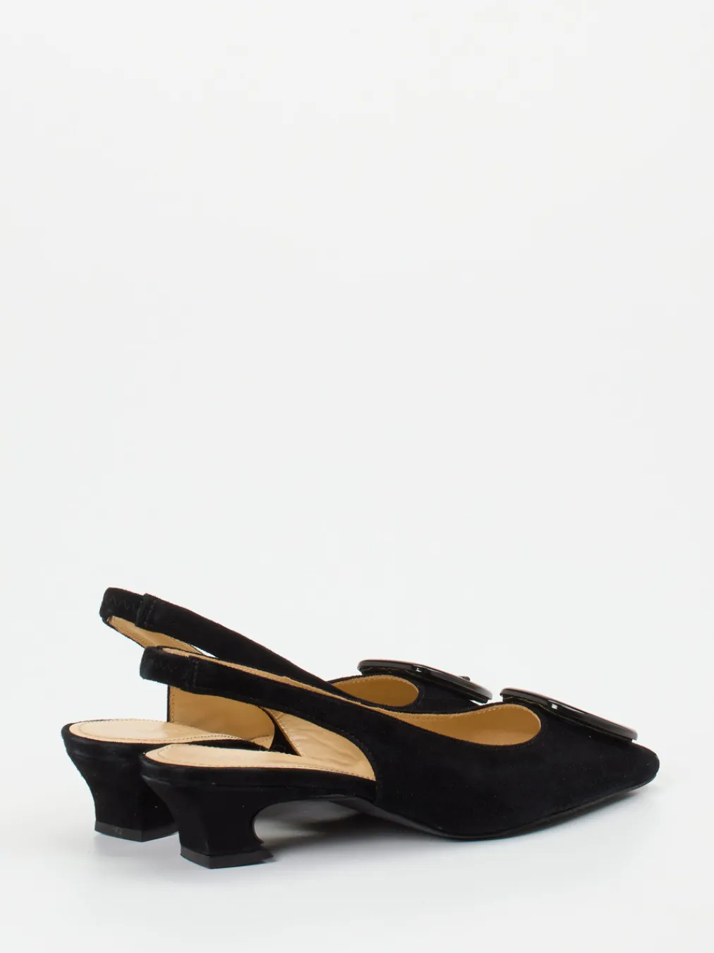 Mit hochwertigem Veloursleder und Vintage-Schnalle kombiniert dieser Slingback-Pumps klassischen Chic mit modernem Understatement – perfekt für stilbewusste Anlässe.