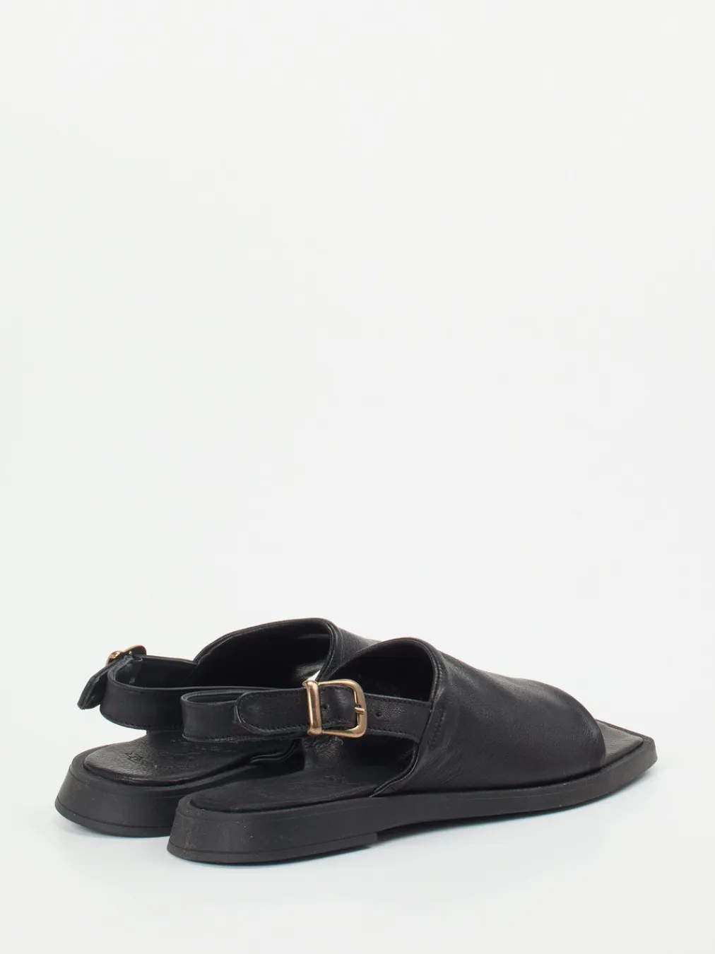 Ideal für urbane Flanierstrecken und stilvolle Reiseziele: Der breite Spannriemen, das gepolsterte Fußbett und der flexibel flache Carré-Leisten sorgen für höchsten Komfort. Eine messingfarbene Schnalle am Fersenriemen erlaubt individuelle Anpassung. Glatte Silhouette, offene Zehenpartie und eine rutschhemmende Gummisohle verschmelzen zu einem modischen Essential im Zeichen von Quiet Luxury und Square Toe Revival. Perfekt kombinierbar mit Leinenhosen oder minimalistischen Sommerlooks.