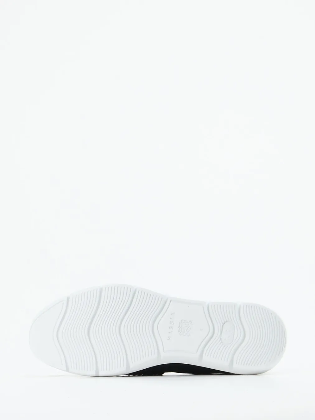 Schlichte Dynamik neu interpretiert.Hassia bietet mit diesem Slipper ein hochkomfortables Modell für sportiv-legere Alltagslooks. Ideal für alle, die Wert auf Leichtigkeit und Passform legen: Das gerippte Stretch-Textil sorgt für ein flexibles Tragegefühl in weiter H-Form, während das Innenfutter aus Leder und das Vario-Wechselfußbett durchdachten Komfort bieten. Markante weiße Gummisohle mit Profil, elastischer Einstieg und Logo-Detail an der Ferse prägen das minimalistische Streetwear-Design im schwarzen Ton-in-Ton-Look. Ein Schuh ganz im Zeichen von Quiet Luxury und moderner Alltagstauglichkeit mit athletischem Touch. Hassia definiert Bequemschuhe mit Premium-Komfort und urbanem Stilverständnis.