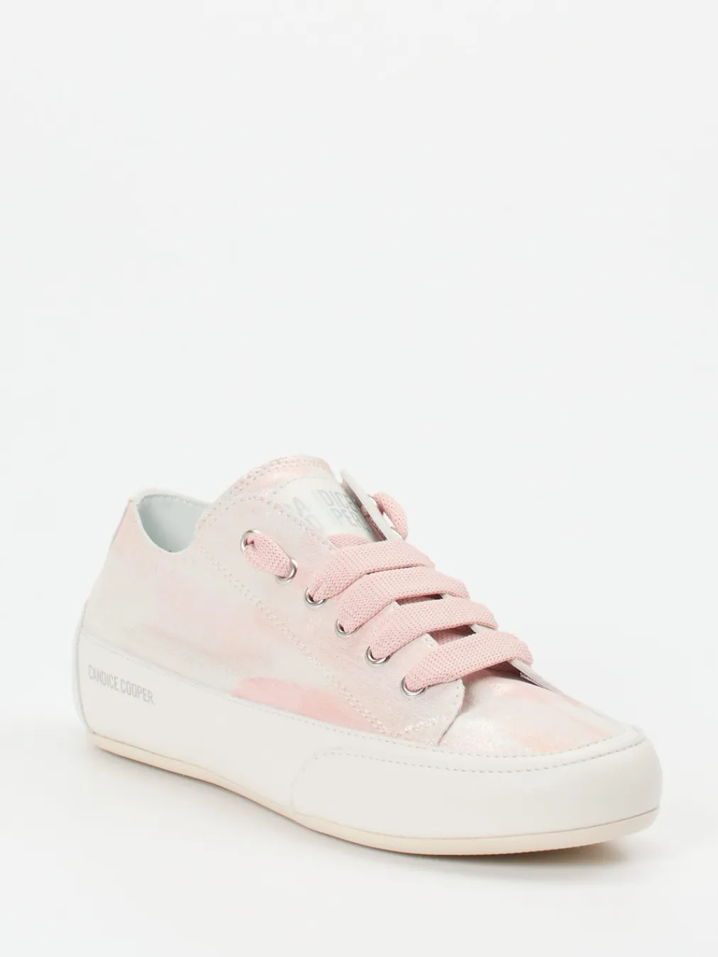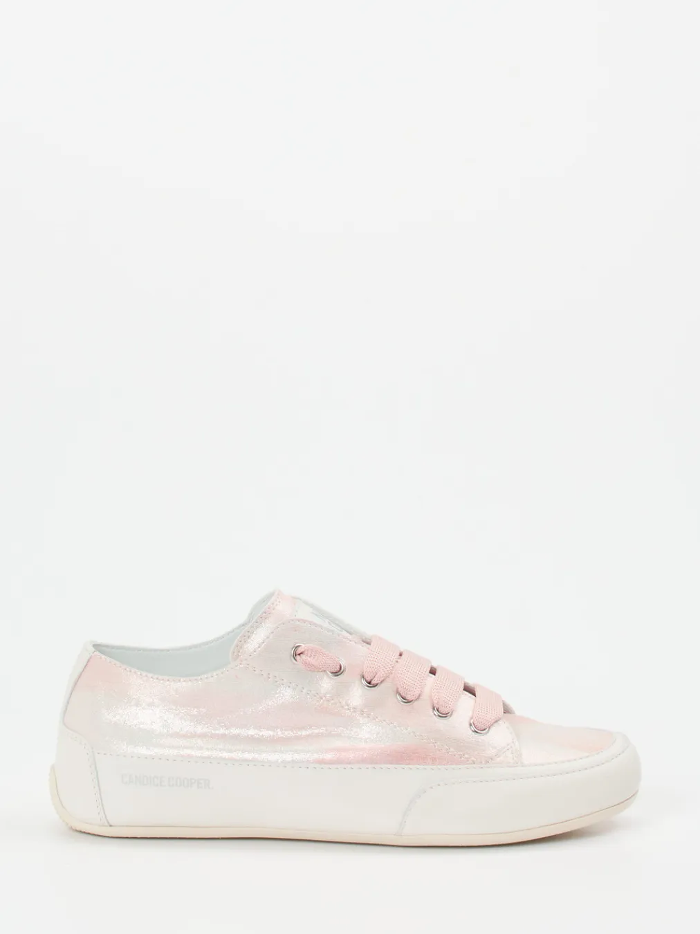 Glänzende Zurückhaltung mit Trendpotenzial.Candice Cooper präsentiert einen Damen-Sneaker, der moderne Eleganz und sommerliche Leichtigkeit verbindet. Für urbane Spaziergänge oder den entspannten Urlaub ist dieser Sneaker eine stilsichere Wahl. Gefertigt aus geprägtem Leder mit rosémetallic glänzendem Finish bietet das Modell eine edle Struktur und ein angenehmes Tragegefühl – unterstützt durch eine breite Schnürung und die flach gehaltene Silhouette. Tonige Nähte, weiß-cremefarbene Kontraste und dezentes Branding runden das Design harmonisch ab. Die flexible Gummisohle sorgt für einen rutschhemmenden Auftritt. Als Inspirationsquelle dienen Streetwear-Einflüsse und Metallic-Trends der Saison. Markentypisch hochwertig verarbeitet mit einem Hauch femininer Raffinesse.