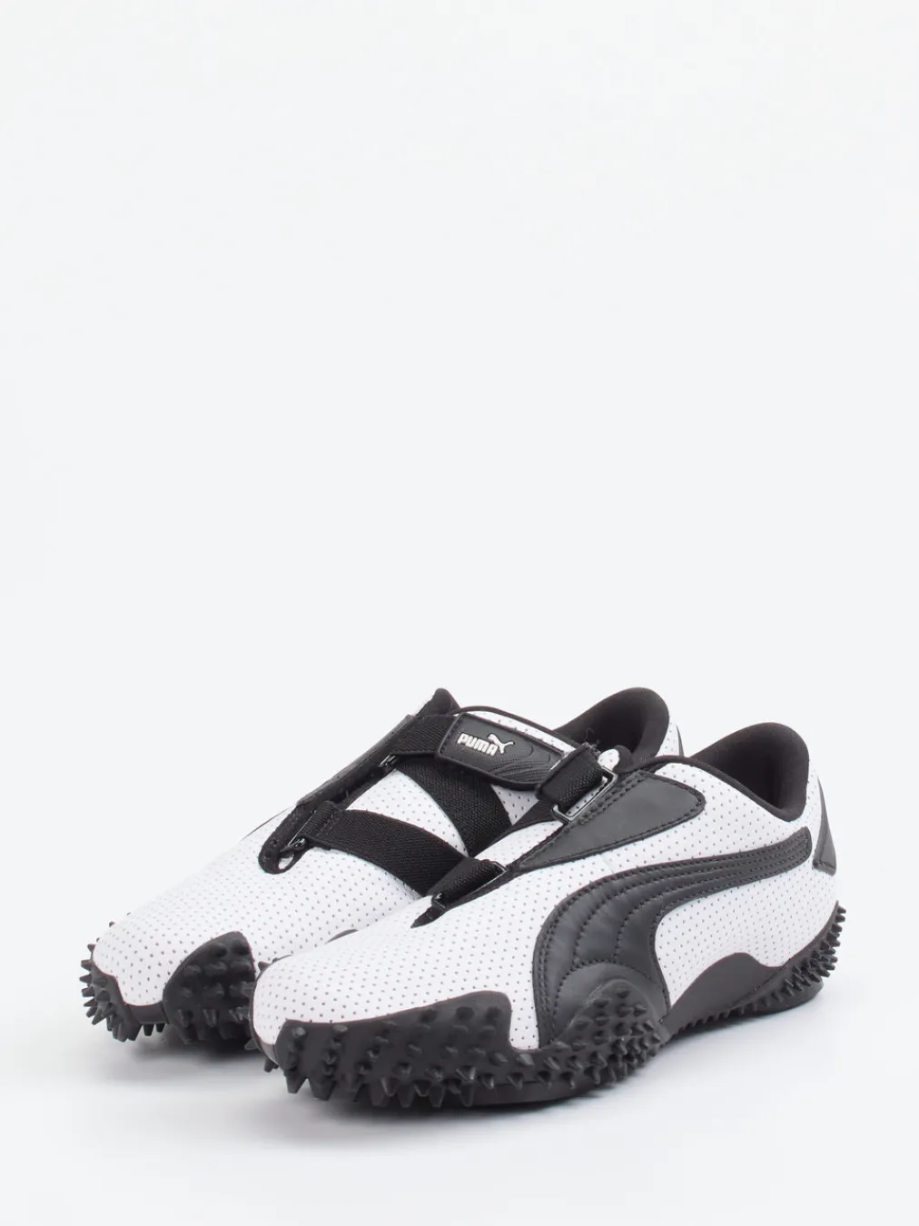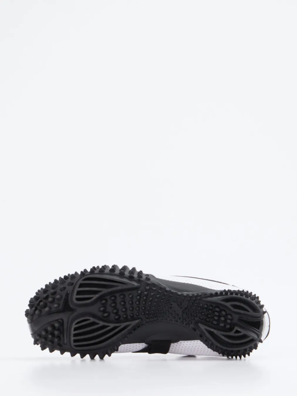 Unkonventionelles Design mit Retro-Futurismus.Puma präsentiert diesen weißen Low-Top-Sneaker mit auffälliger Silhouette. Ideal für stilbewusste Freizeit- und Streetwear-Looks: Der Sneaker aus perforiertem Kalbleder kombiniert eine matt strukturierte Oberfläche mit schwarzem Logo-Print und einem charakteristischen Klettverschluss. Die aggressive Außensohle mit Y2K-Anklängen setzt ein gestalterisches Ausrufezeichen und greift Retro- und Techwear-Elemente auf. Das Ortholite-Fußbett sorgt für optimale Belüftung und angenehme Dämpfung. Besonders gut kombinierbar mit sportlichen Tights oder Tech-Accessoires. Ein visuelles Statement mit maximaler Funktionalität – typisch Puma.