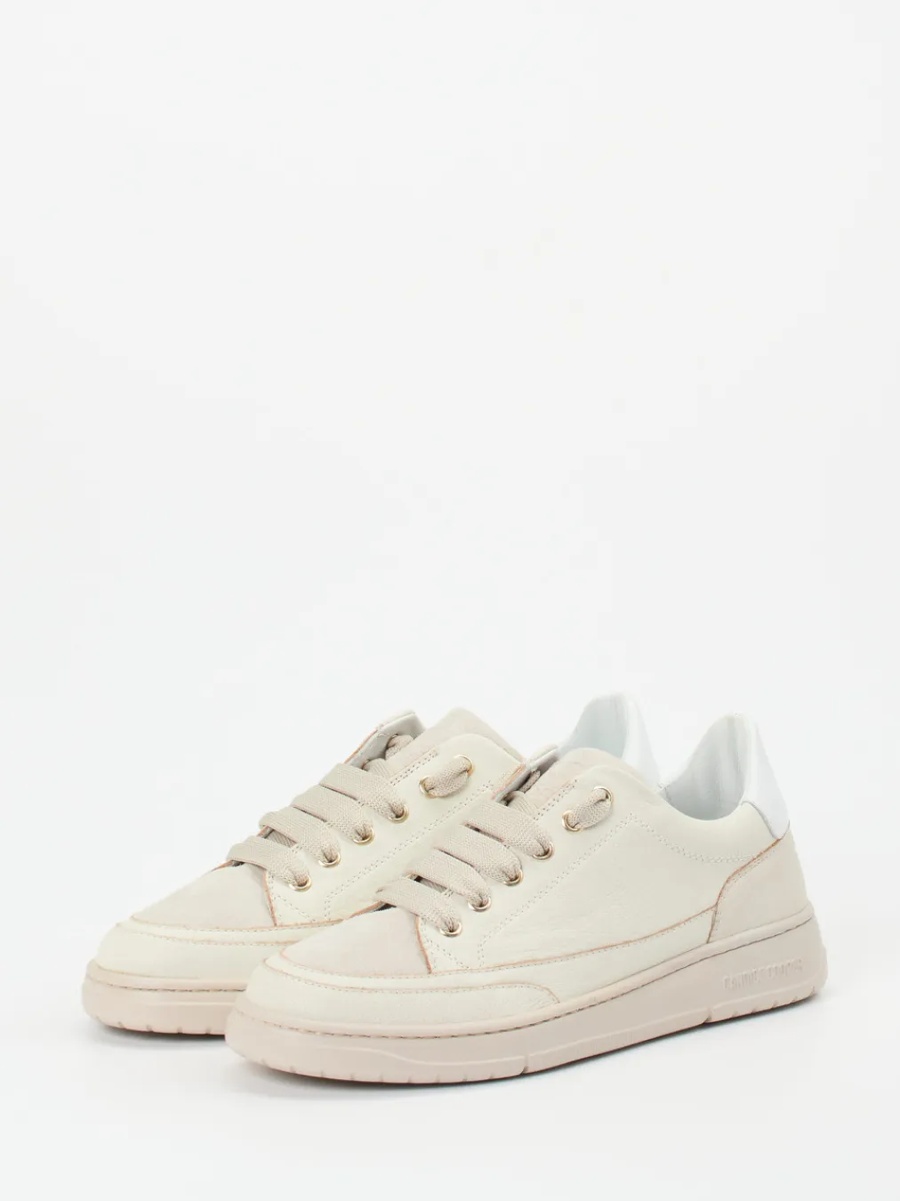 Minimalistisch, smart, saisonal relevant.Candice Cooper präsentiert einen stilvollen Damen-Sneaker im Low-Top-Design. Perfekt für entspannte Tage zwischen Stadtbummel und Cafépause besticht das Modell durch hochwertiges Kalbleder in Beige, ergänzt mit samtig strukturiertem Veloursleder vom Vorderblatt bis zur Zunge. Die klassische, abgerundete Silhouette wird durch goldfarbene Metallösen, einen gepolsterten Schaftrand und die dezente Farbkombination aus Beige, Sand und Weiß ergänzt. Die Gummisohle mit Logo-Prägung und das atmungsaktive Lederfutter sorgen für Laufkomfort. Ein Modell, das sowohl zum casual Streetstyle als auch zur soften Neutrals-Ästhetik der Saison passt. Der Sneaker steht für dezente Eleganz mit hohem Tragekomfort – typisch Candice Cooper.