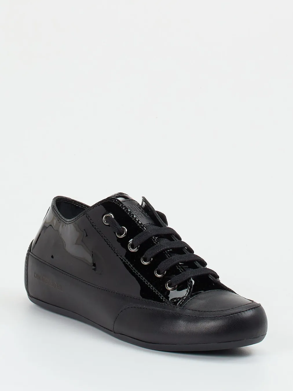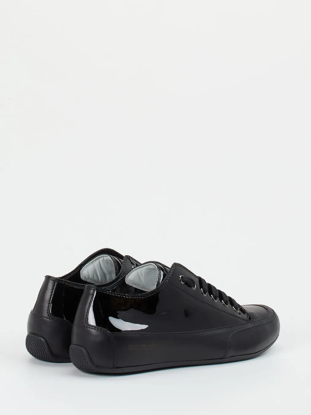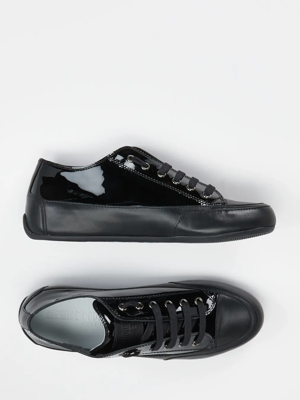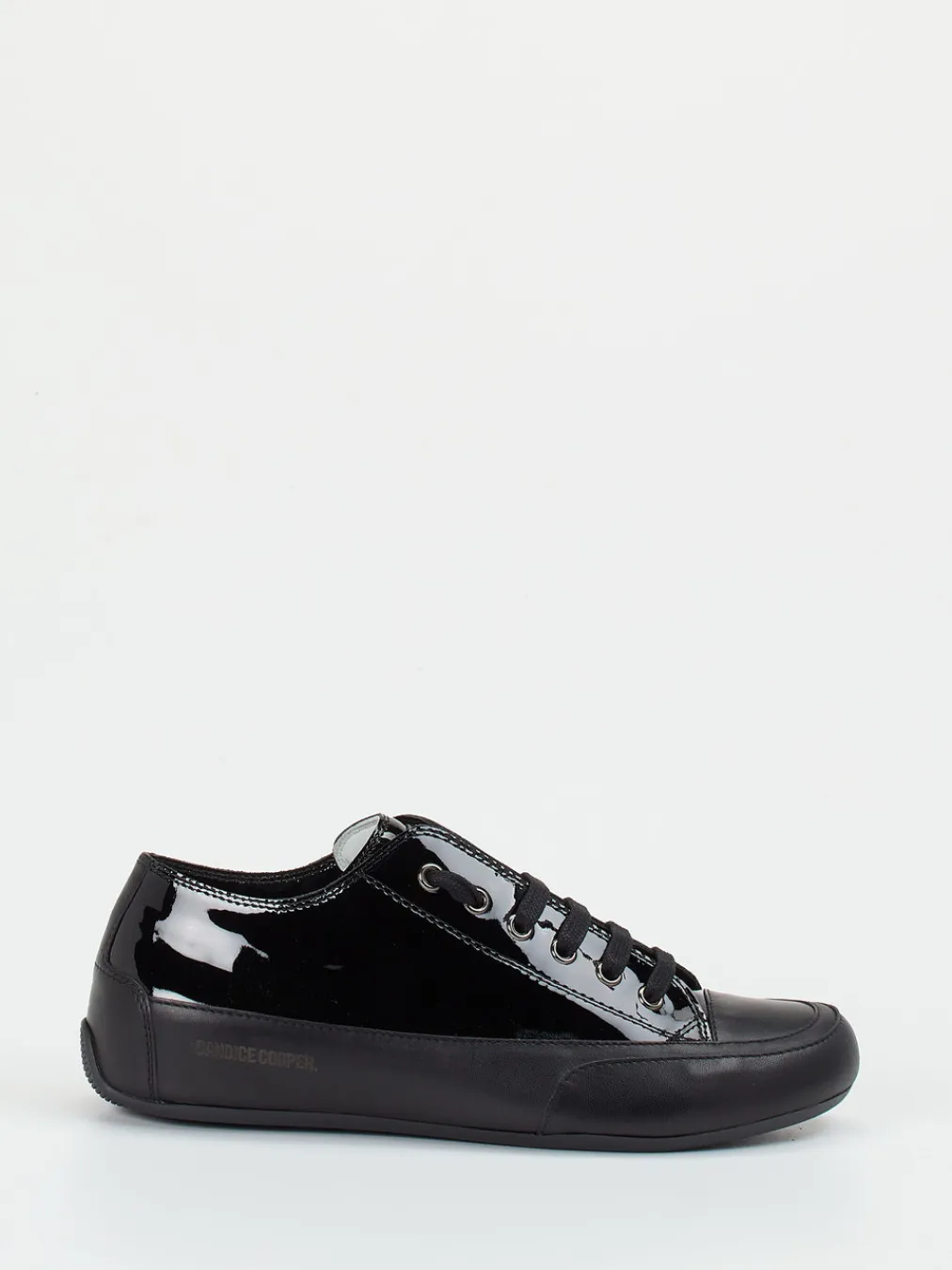 Puristischer Chic trifft auf hochwertigen Komfort: Der monochrome Sneaker von Candice Cooper setzt auf glänzendes Lackleder in elegantem Schwarz und stilvolle Zurückhaltung im Design.