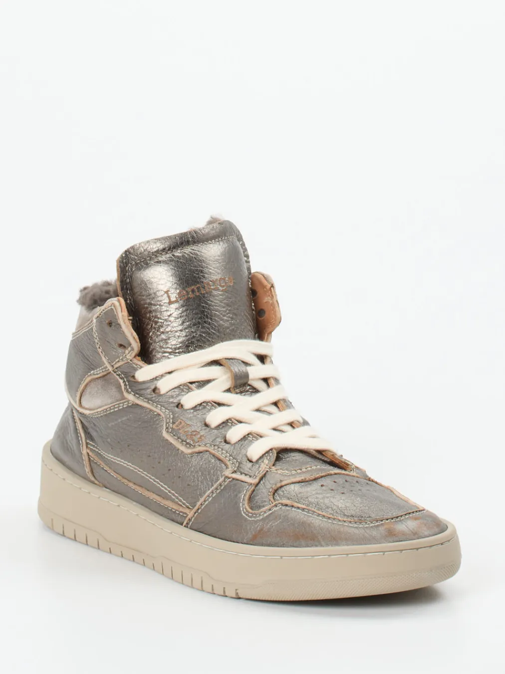 Warmer Streetstyle mit Struktur.Lemargo präsentiert einen modischen Damen-Sneaker in High-Top-Form. Ideal für kalte Tage, bietet das Modell durch das Lammfellfutter angenehme Wärme – kombiniert mit einem trendigen Metallicleder in Bronzebraun mit genarbter Struktur. Die sportlich-klassische Silhouette punktet mit tonigen Kontrastnähten, einer robusten Schnürung und gepolstertem Schaft. Die Gummisohle mit strukturiertem Profil sorgt für sicheren Halt. Urban Utility trifft auf retro-inspirierte Streetwear – ein Look, der Stil und Funktion vereint. Perfekt zu Steppweste und Oversize-Strick. Lemargo steht für Qualität mit modernem Charakter und Wohlfühlfaktor im Alltag.