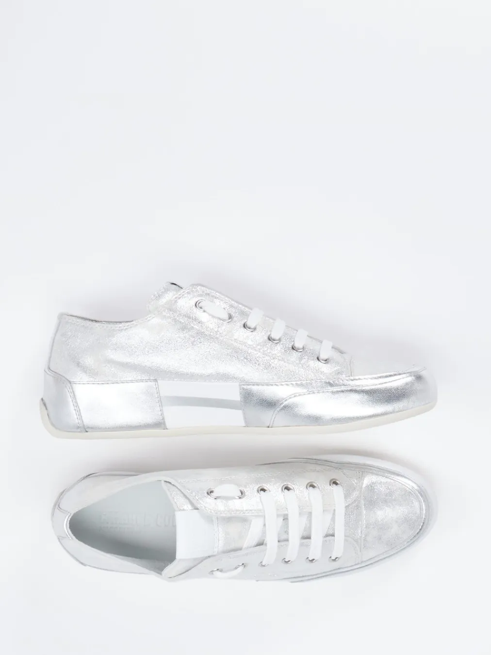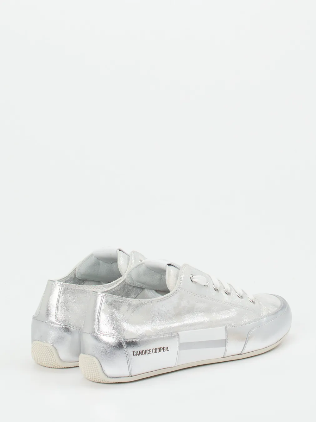 Ein Sneaker von Candice Cooper im silbernen Metallic-Look – stilvoller Begleiter für urbane Looks mit markanter Gummisohle und klarer Linienführung.