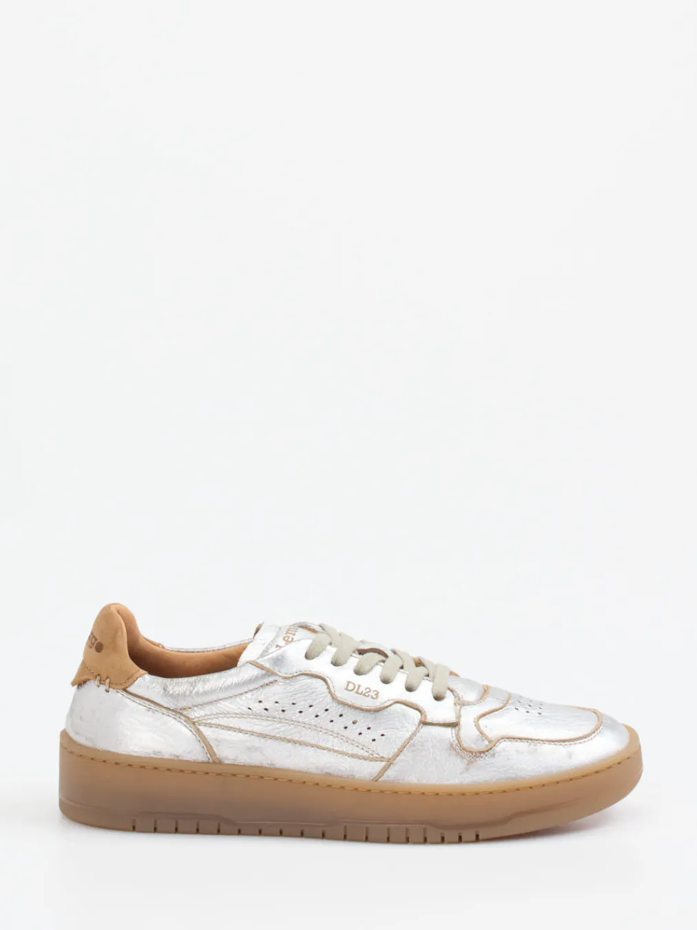 Futuristische Lässigkeit mit Retro-Flair.Lemargo präsentiert mit diesem niedrig geschnittenen Sneaker ein modisches Highlight der Streetwear-Kultur. Ideal für urbane Looks zwischen Alltag und Szene-Café: Das Modell besteht aus hochwertigem Metallicleder mit glänzender Oberfläche, kombiniert mit Details in Hellbraun und Beige. Seine klassische Silhouette wird ergänzt durch sportliche Perforationen, gepolsterten Einstieg und eine rutschhemmende, dunkel getönte Gummisohle. Kontrastbesätze und das Retro-inspirierte Design verleihen dem Schuh ein markantes Finish, das sich mit Oversize-Hoodie und Metallic-Accessoires voll entfaltet. Komfort trifft Stil – ein ausdrucksstarker Sneaker im typischen Lemargo-Look.