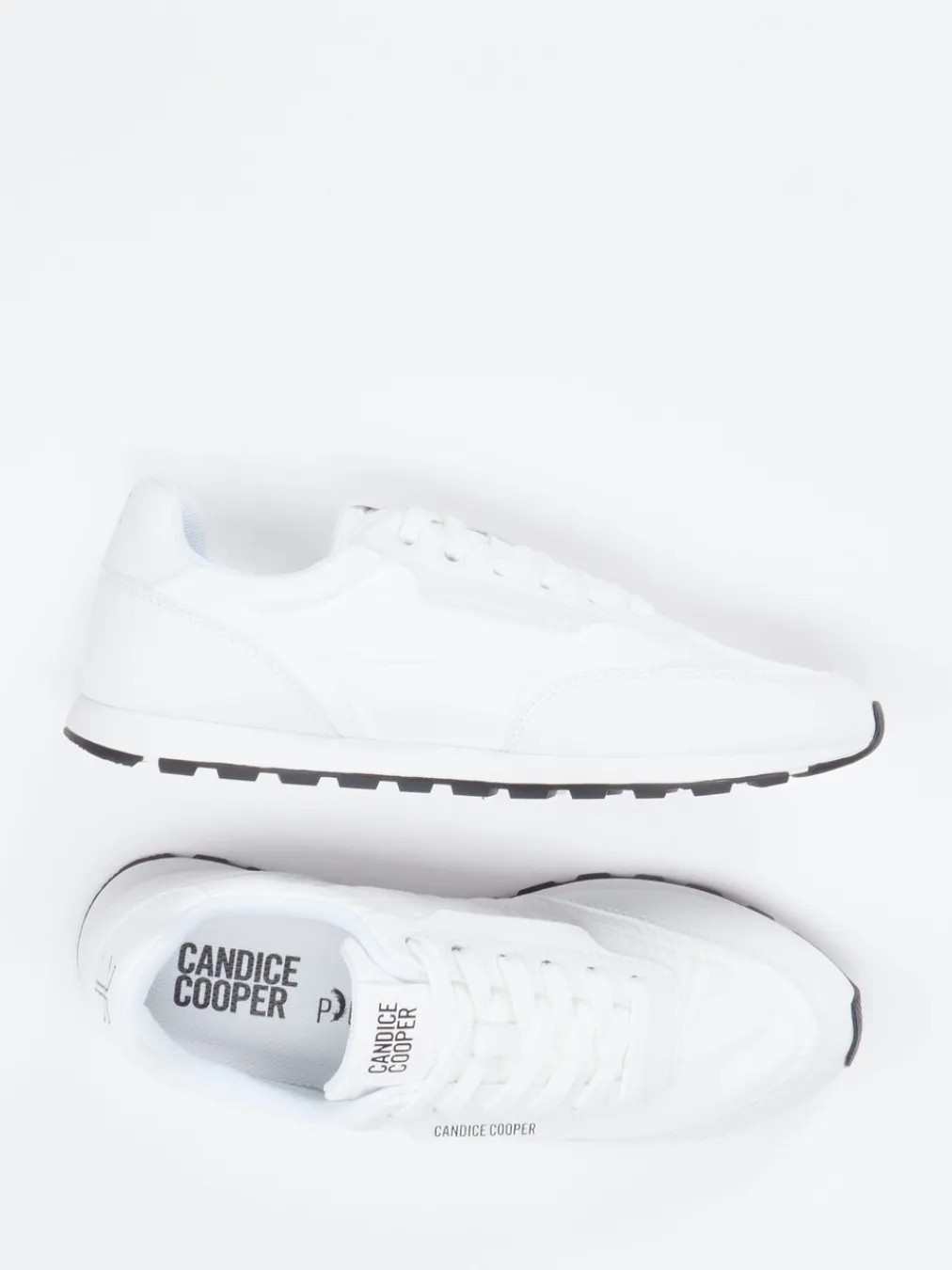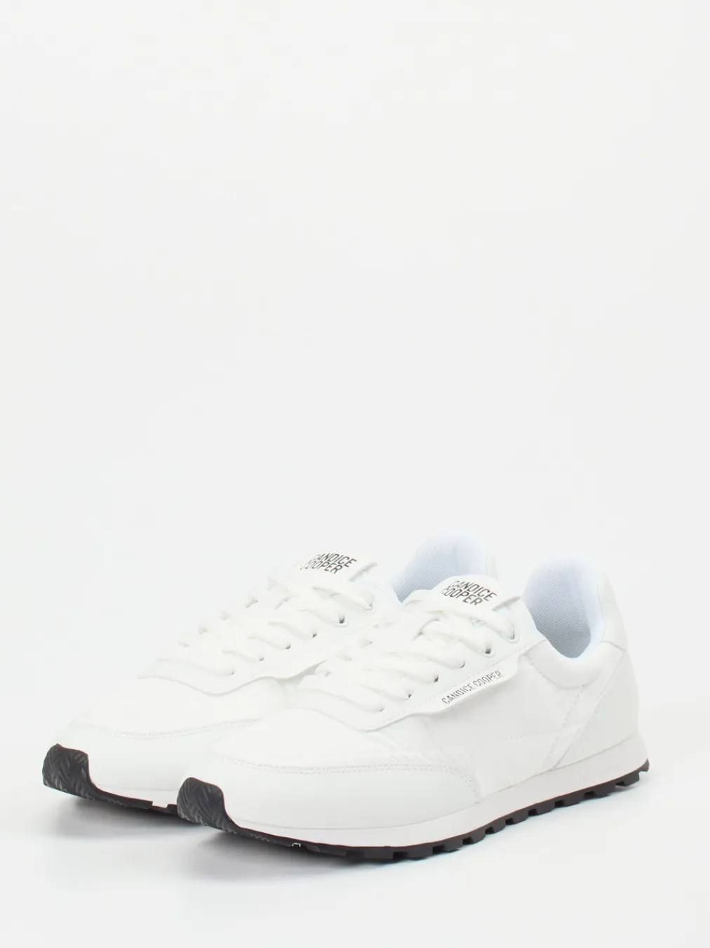 Minimalistischer Style auf neuem Niveau.Dieser Sneaker von Candice Cooper verbindet klassisches Retro-Design mit moderner Alltagstauglichkeit. Für entspannte Freizeitlooks oder den Weg durch die Stadt bietet das Modell einen stilvollen Auftritt. Das weiße Nylon wird durch samtiges Glattleder in Ton-in-Ton-Optik ergänzt. Das flache Design wird durch Logo-Applikationen auf Lasche und Ferse betont, dazu sorgt die grob profilierte Gummisohle für rutschfesten Komfort. Stilistischer Einfluss aus Streetwear und Quiet Luxury verleiht dem Sneaker modische Souveränität. Optimal zu Jogpants, Jeans oder monochromen Outfits. Zeitloser Komfort mit modernem Retro-Appeal – typisch Candice Cooper.