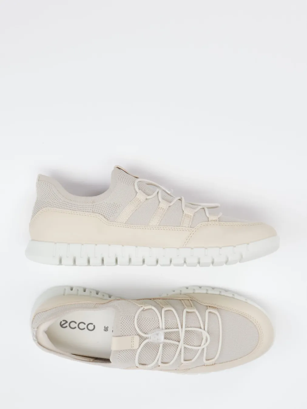 Ecco präsentiert diesen Damen-Sneaker als Slip-On-Modell mit sportlich-kompakter Silhouette.