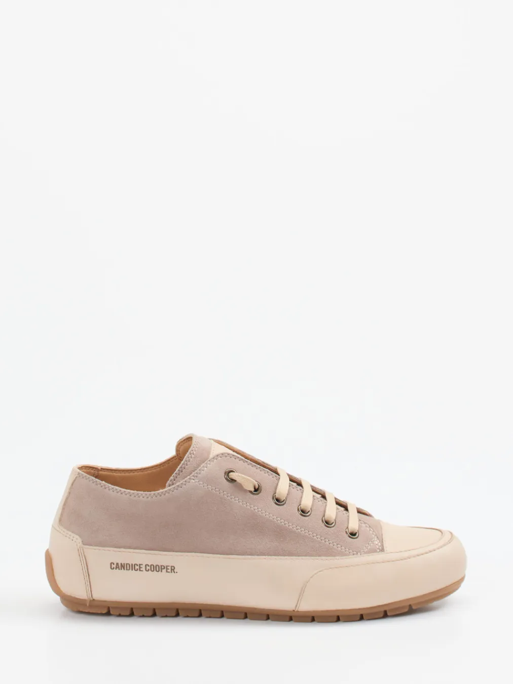 Minimalistische Eleganz trifft Materialvielfalt.Candice Cooper präsentiert mit diesem Sneaker eine modische Interpretation zeitloser Low-Top-Silhouetten. Ideal für warme Tage in der City oder entspannte Urlaubs-Outfits überzeugt das Modell durch eine Kombination aus beigem Kalbleder und taupefarbenem Veloursleder mit samtiger Oberfläche. Die flache, geradlinige Form wird ergänzt durch eine profilierte Gummisohle für sicheren Tritt auf städtischem Terrain. Ton-in-Ton gehaltene Nähte sowie geprägte Logos auf Lasche und Ferse unterstreichen den minimalistischen Anspruch. Dezente Metallösen sorgen für langlebige Funktionalität. Perfekt zu hellen Chinos oder Leinenhosen. Ein Sneaker mit bewusstem Designanspruch und komfortbetonter Innenausstattung.