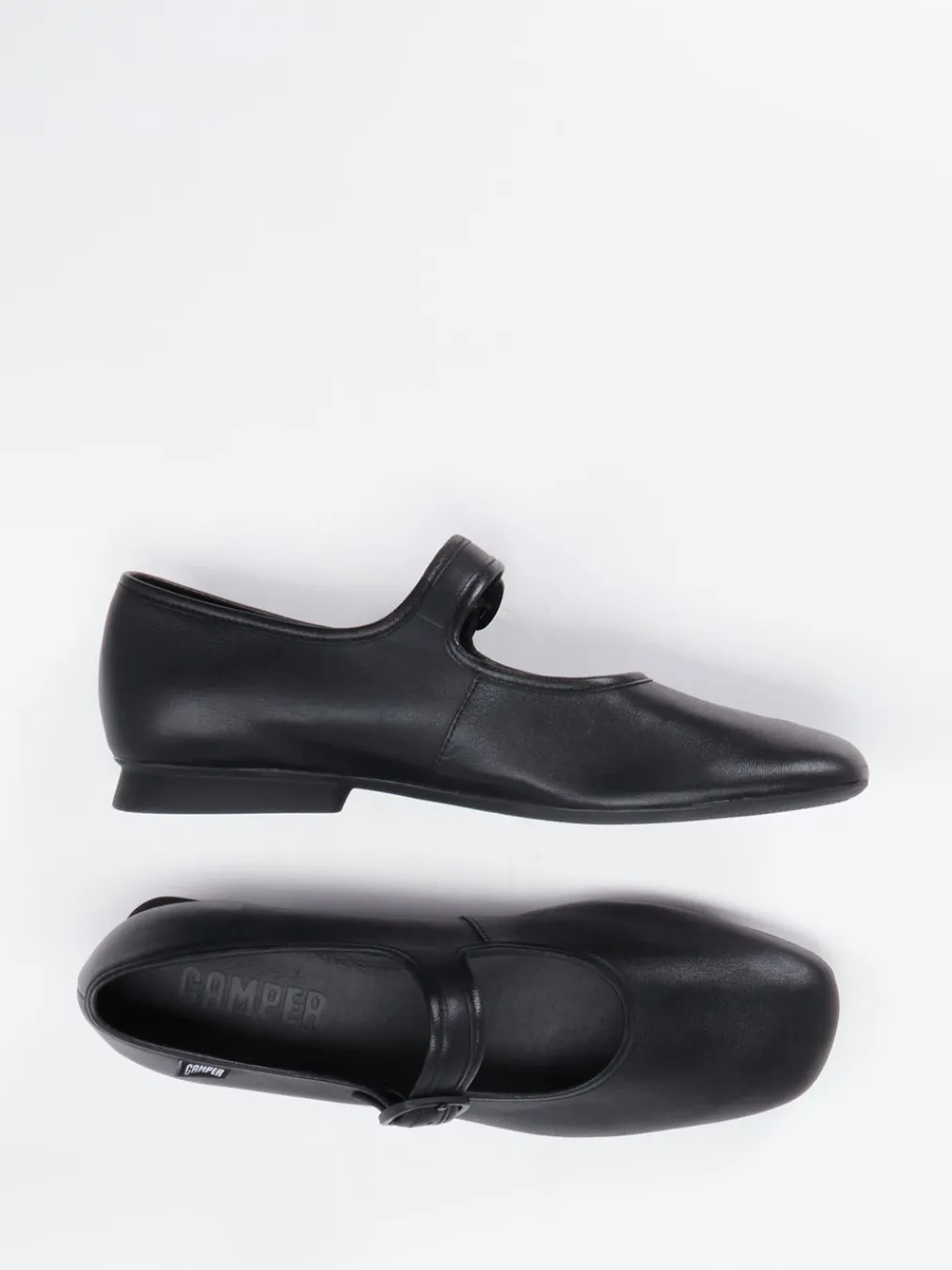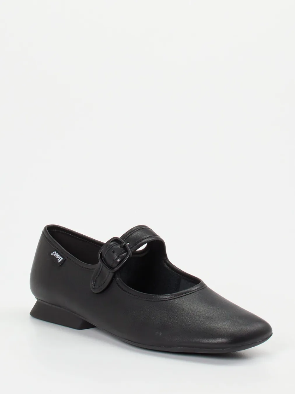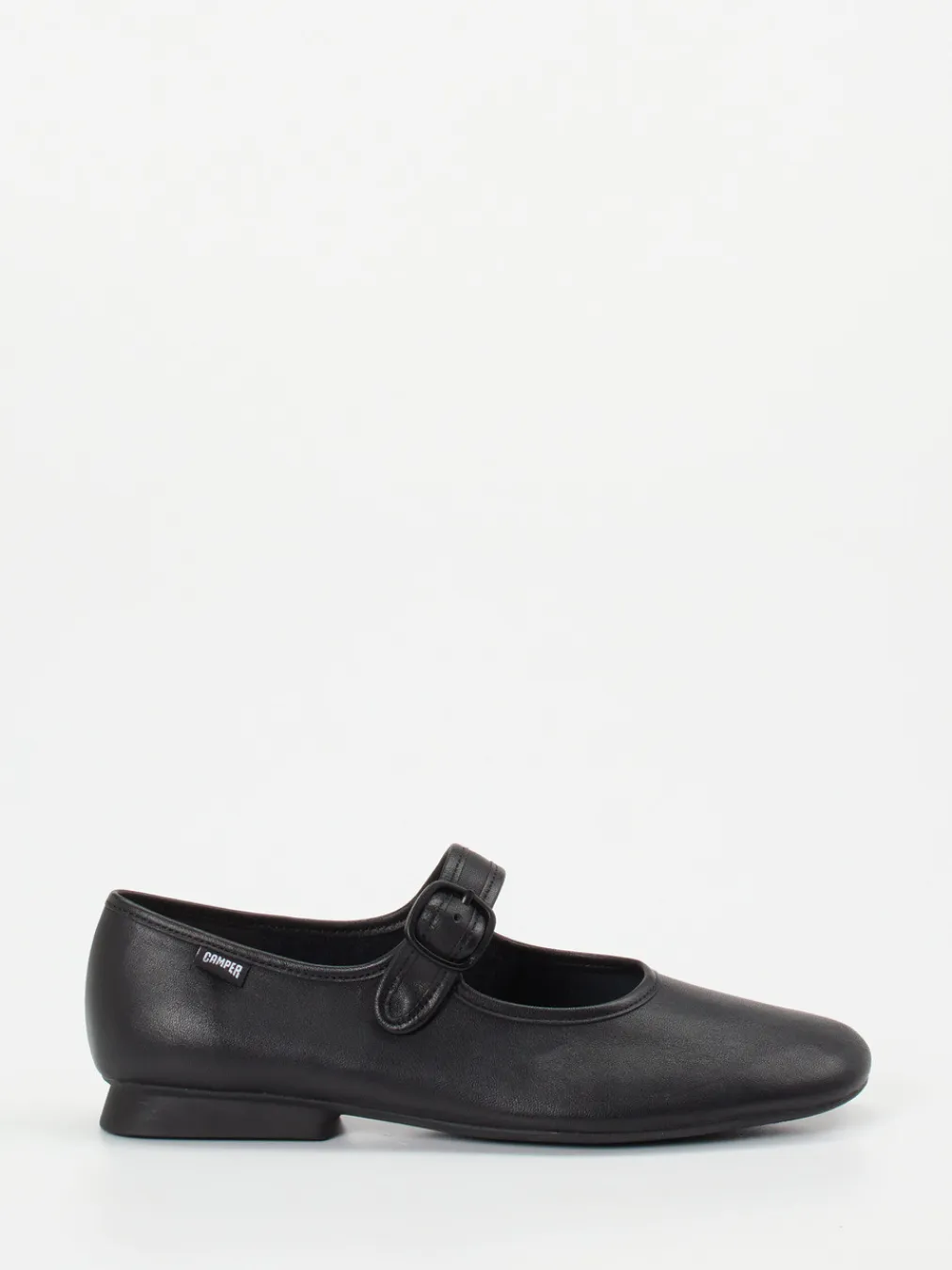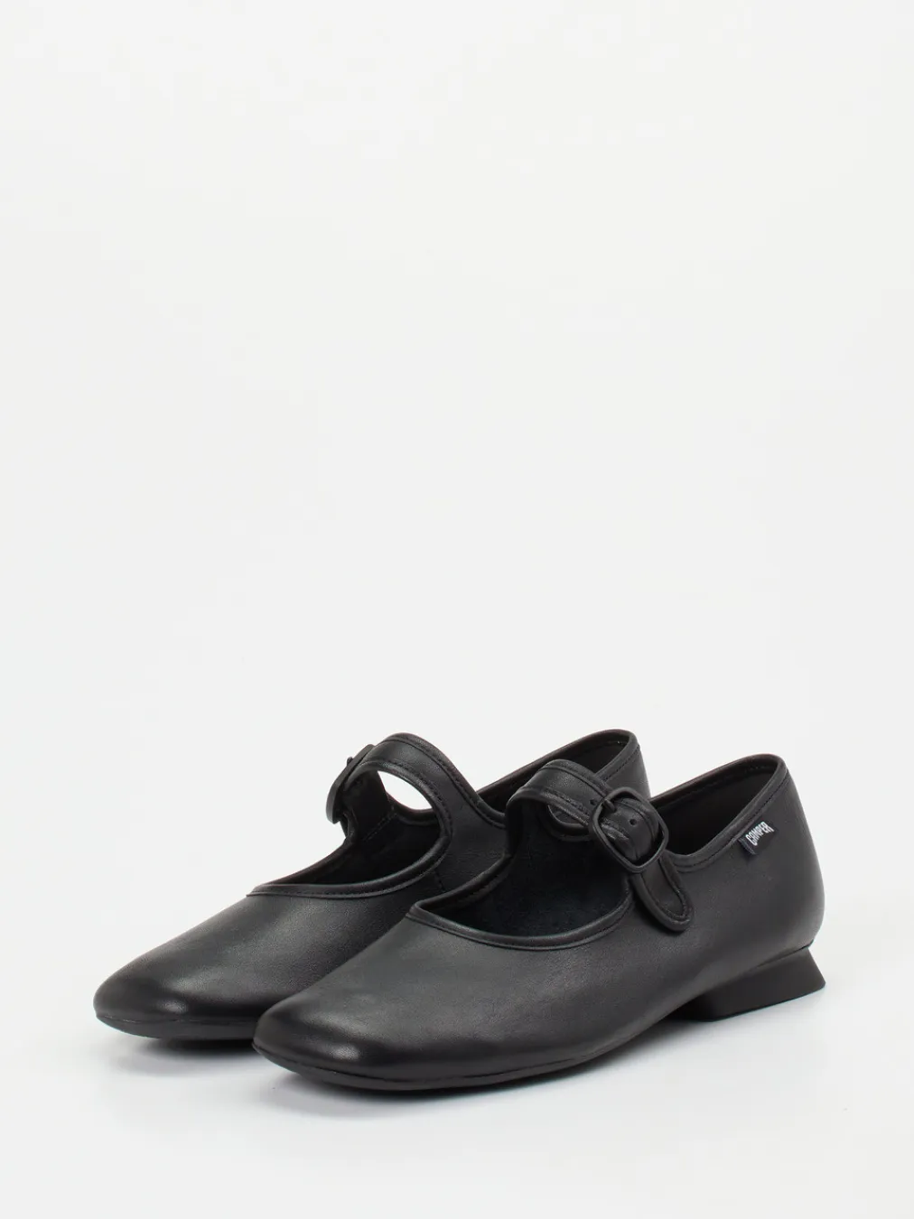 Dieser Camper-Spangenpumps verbindet mattes Kalbleder mit reduzierter Formensprache und einem femininen Riemen für festen Halt im Alltag und im Büro.