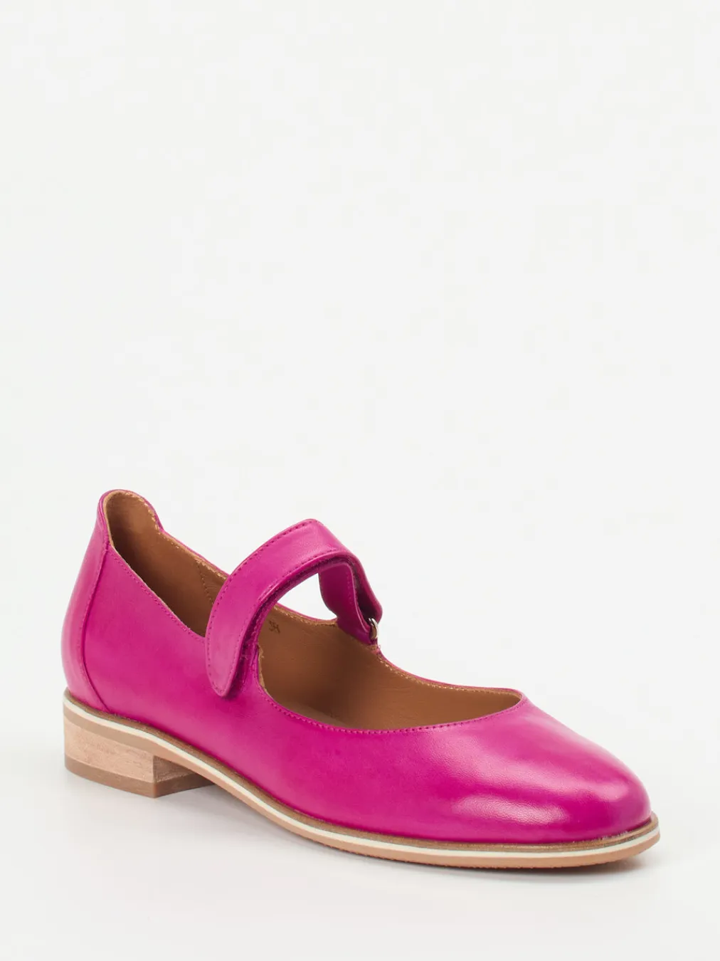 Der Spangenpumps von Everybody überzeugt mit hochwertigem Kalbleder in leuchtendem Pink und praktischer Klettlösung – ein stylischer Akzent mit Retro-Charme.