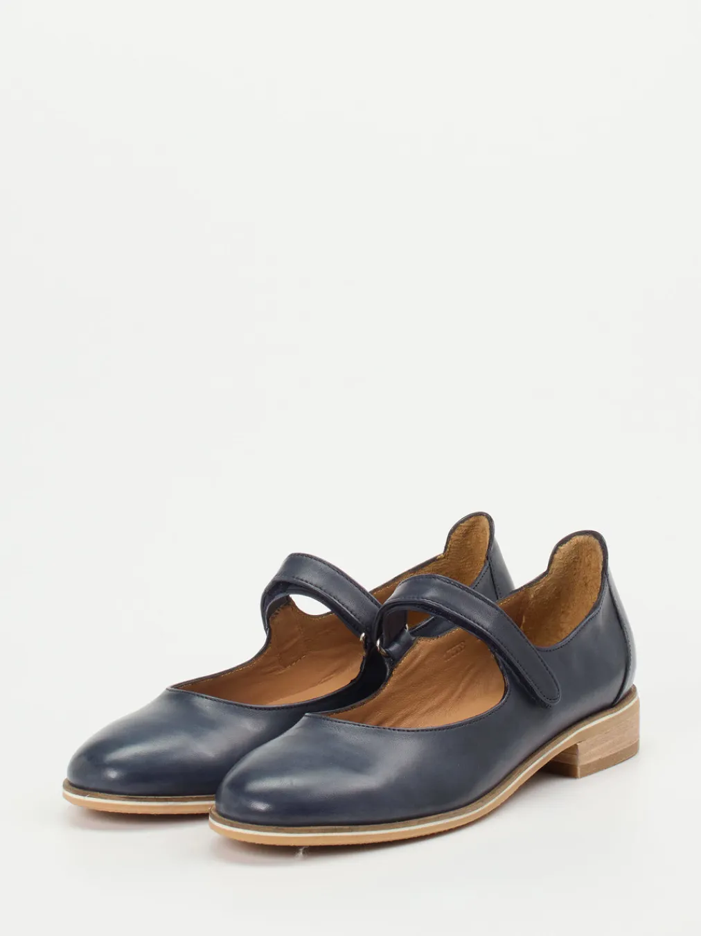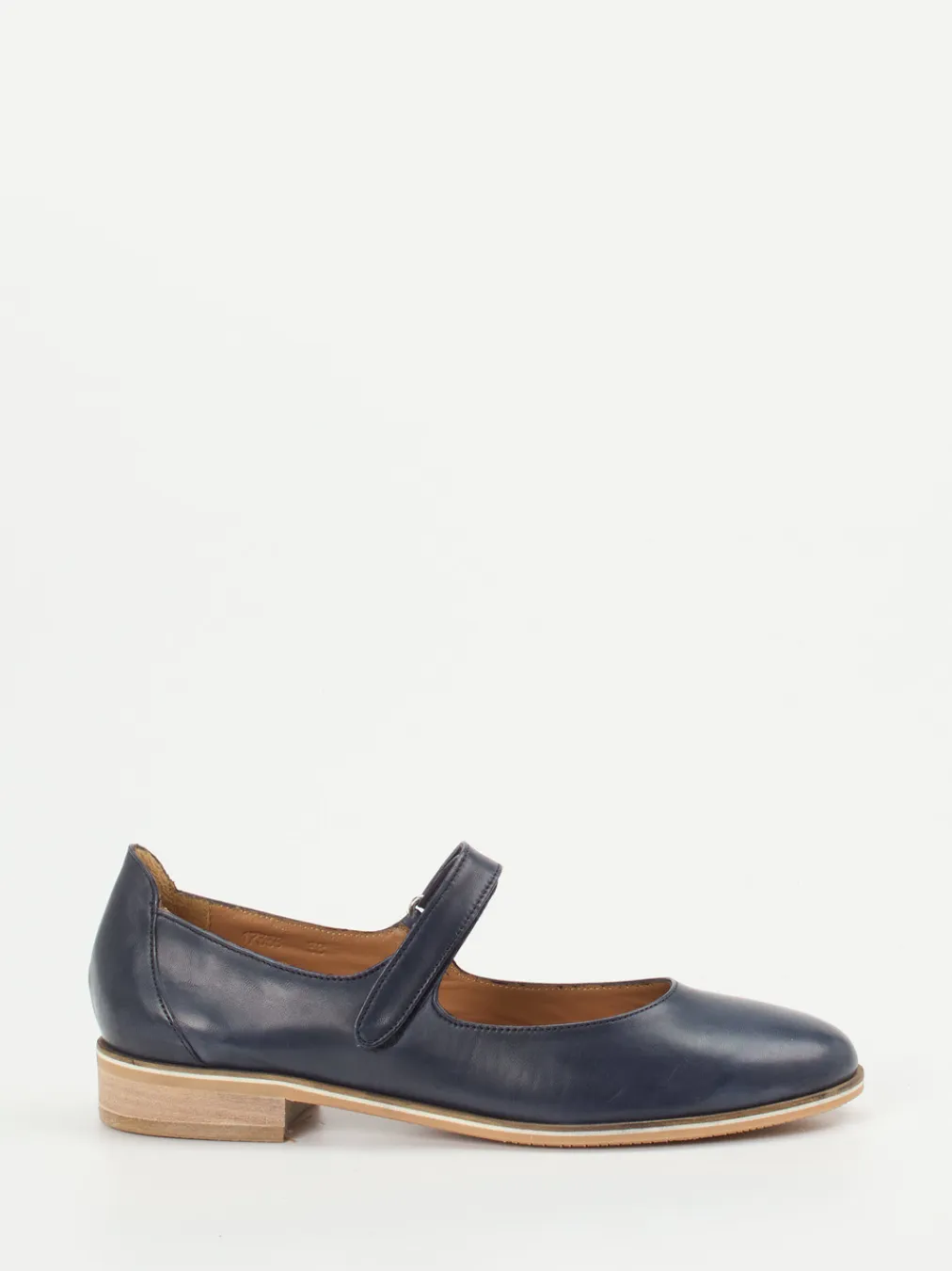Dieser Mary-Jane-Ballerina überzeugt mit weichem Kalbleder, dezentem Glanz und einem komfortablen Klettverschluss – zeitgemäß interpretiert mit Vintage-Charme.