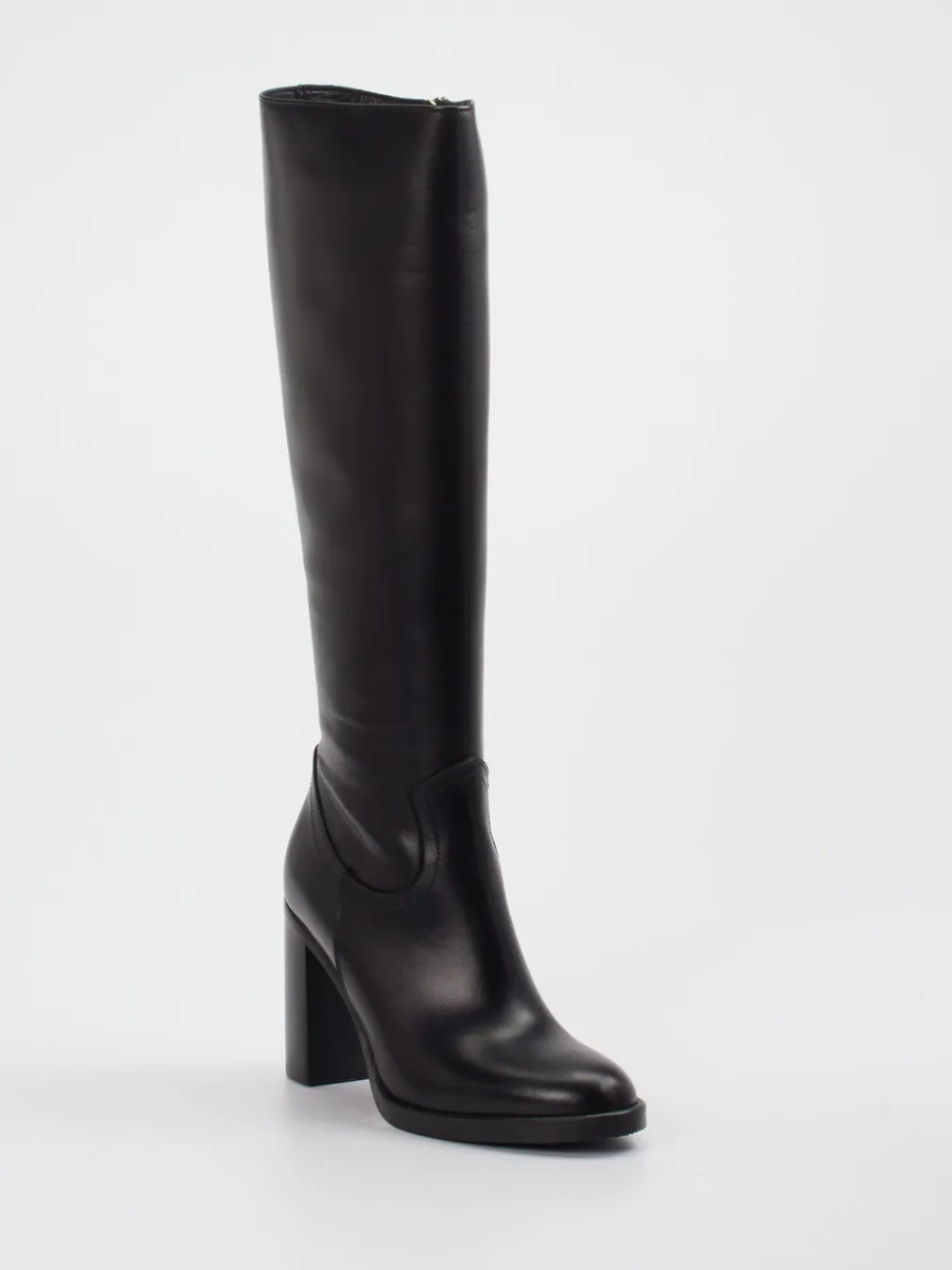 Edles Kalbleder in glänzender Optik und ein goldfarbener Reißverschluss akzentuieren den minimalistischen Look dieses eleganten Damenstiefels.