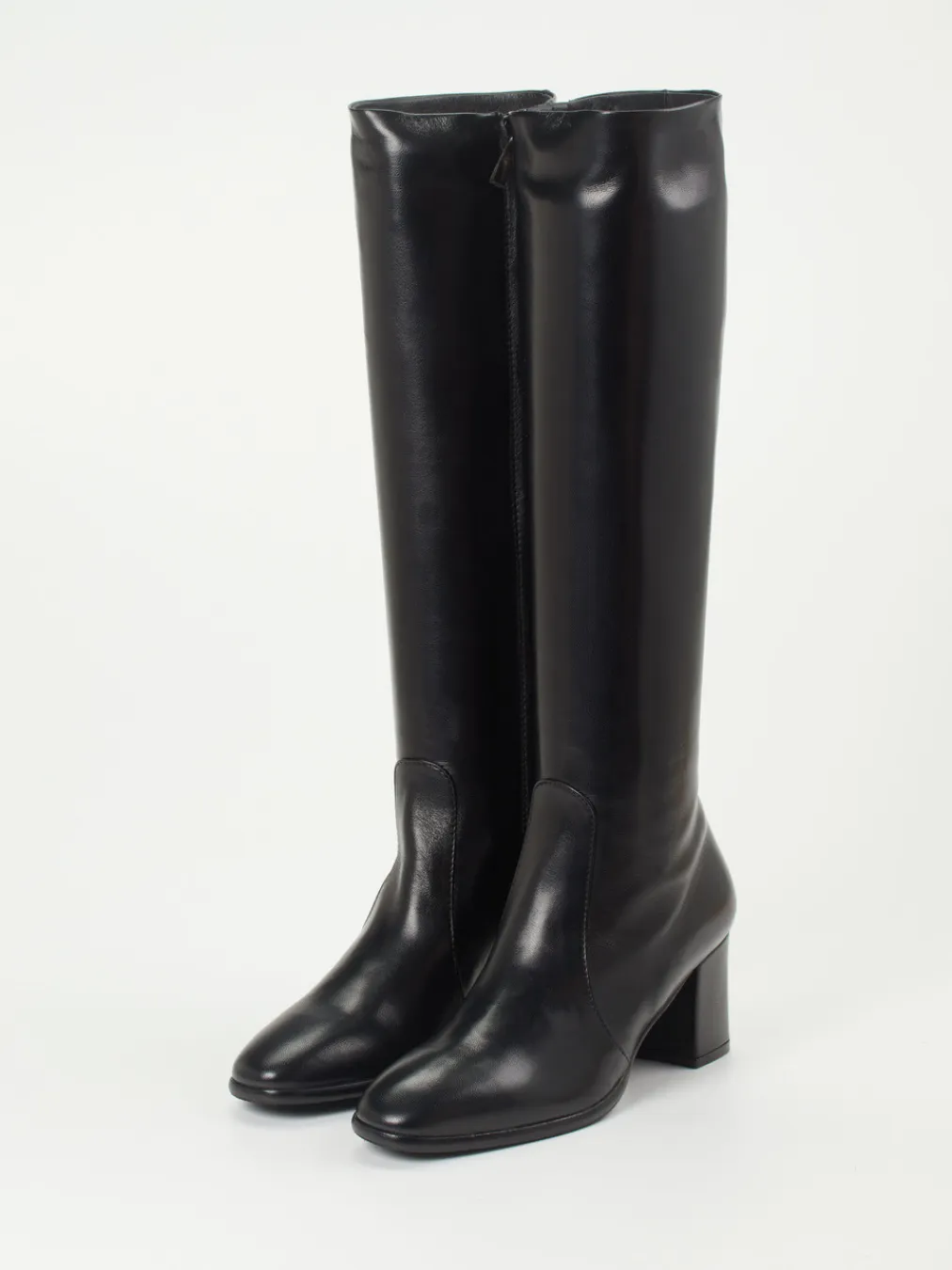 Ideal für formelle Anlässe oder urbane Business-Looks überzeugt das Modell durch seine glatte, leicht glänzende Oberfläche in edlem Schwarz. Der seitlich verdeckte Reißverschluss sorgt für eine schlanke Silhouette bei gleichzeitig hoher Alltagstauglichkeit. Ein 6 cm hoher Blockabsatz unterstreicht den femininen Charakter, während das gepolsterte Lederfußbett und das schwarze Innenfutter aus Ziegenleder für Tragekomfort sorgen. Im Look trifft minimalistischer Chic auf Retro-70s-Stil und passt zu Kaschmirmantel oder Midikleid.