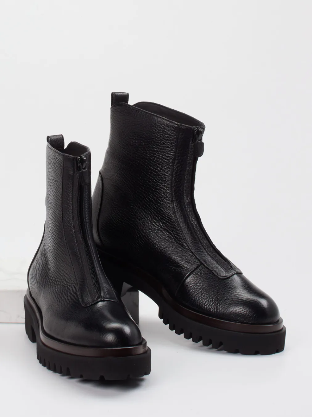 Minimalismus trifft Profil.Truman’s bringt mit dieser Damen-Stiefelette ein Modell auf den Punkt, das zeitlose Eleganz und Komfort vereint. Für kühle Herbsttage im urbanen Alltag designt, besticht die Form durch knöchelhohe Silhouette und rund zulaufende Linie. Gefertigt aus hochwertigem Elchleder mit genarbter Struktur, steht das Modell für Langlebigkeit und gehobenen Stil. Der tonal abgestimmte Reißverschluss auf dem Blatt und die markante Profil-Gummisohle setzen moderne Akzente. Ein Innenfutter aus geschmeidigem Lammnappa sorgt für angenehmen Tragekomfort. Stilistisch bewegt sich der Schuh zwischen Quiet Luxury und Streetwear, ideal zu Oversized-Mänteln oder Lederaccessoires. Ein modisches Statement mit kompromissloser Materialqualität von Truman’s.