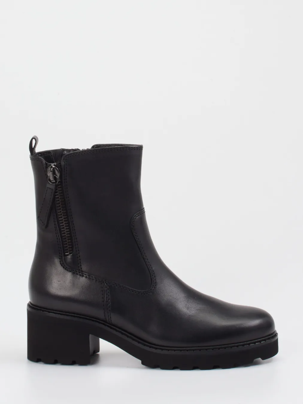Urbaner Begleiter mit klarer Linie.Gabor Comfort präsentiert mit dieser Damen-Stiefelette ein Modell für die stilvolle Herbst-/Wintersaison. In Alltag und Office sorgt die schwarze Stiefelette aus mattiertem Kalbleder für souveräne Auftritte. Ihre klassische, knöchelhohe Form wird durch einen seitlichen Reißverschluss mit Lederzipper funktional ergänzt. Ton-in-Ton-Nähte und eine rückseitige Zuglasche betonen das reduzierte Design. Die markant profilierte Sohle mit 4 cm Blockabsatz liefert Tragekomfort und festen Stand – passend zum „Quiet Utility“-Trend. Minimalistische Mode lässt sich damit ebenso kombinieren wie klassische Wollmäntel. Ein vielseitiger Komfortschuh – gefertigt für urbanes, stilbewusstes Gehen.