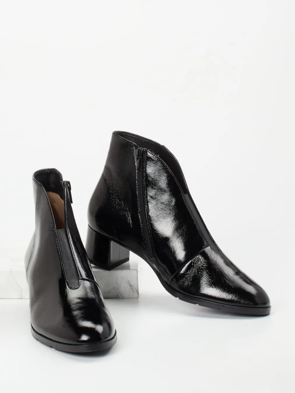 Ob fürs Büro oder den Stadtbummel – das Modell vereint Funktionalität mit zeitloser Eleganz. Schwarzes Lackleder mit glänzender Oberfläche verleiht dem klassischen, knöchelhohen Schnitt Raffinesse. Details wie ein Ton-in-Ton-Reißverschluss, glatte Nahtführung sowie ein Blockabsatz unterstreichen den stilvollen Auftritt. Weiches Lammlederfutter, ein Elasteinsatz zur Weitenanpassung und das gepolsterte Wechselfußbett sorgen für Tragekomfort auf höchstem Niveau. Der Look greift Trendthemen wie „Quiet Luxury“ und „Glossy Surfaces“ gekonnt auf und ergänzt klassische wie modische Outfits.