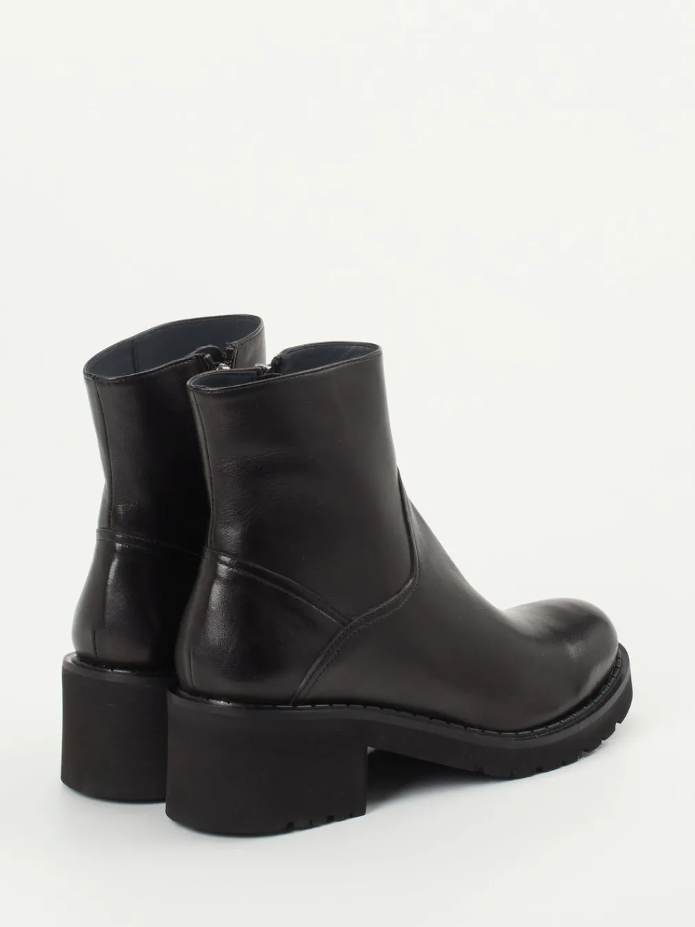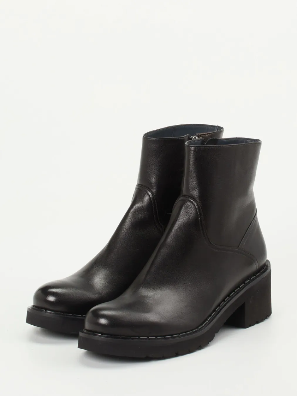 Diese Stiefelette kombiniert weiches Lammleder mit einer profilierten Sohle in Leichtzellbauweise – ein stilvoller Begleiter für urbanen Komfort in der kühleren Saison.