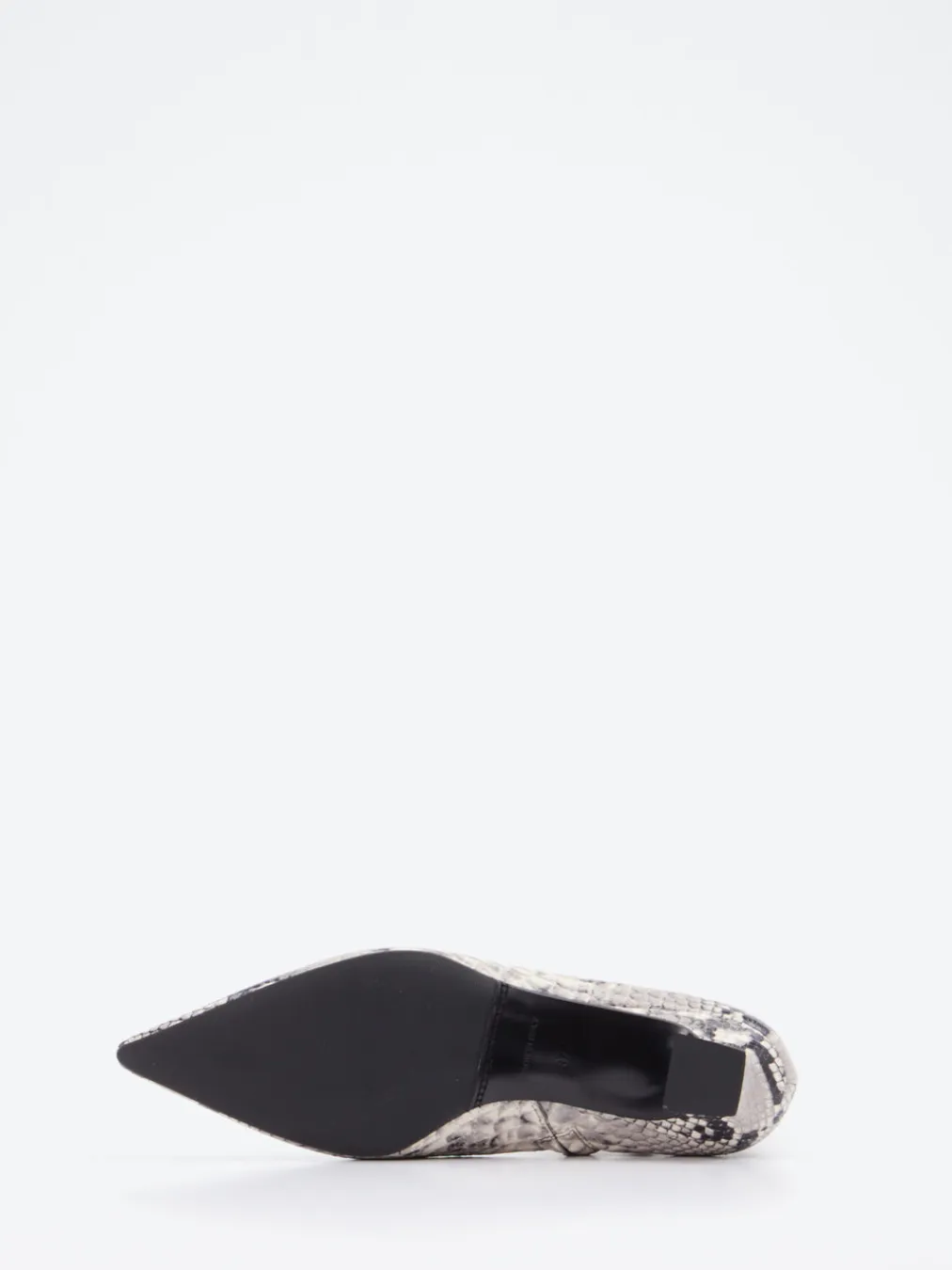 Mit ihrem taillierten Schaft und der spitz zulaufenden Front inszeniert diese Stiefelette einen edlen Auftritt – stilvoll akzentuiert durch den eleganten Kitten Heel und die feine Snake-Prägung.