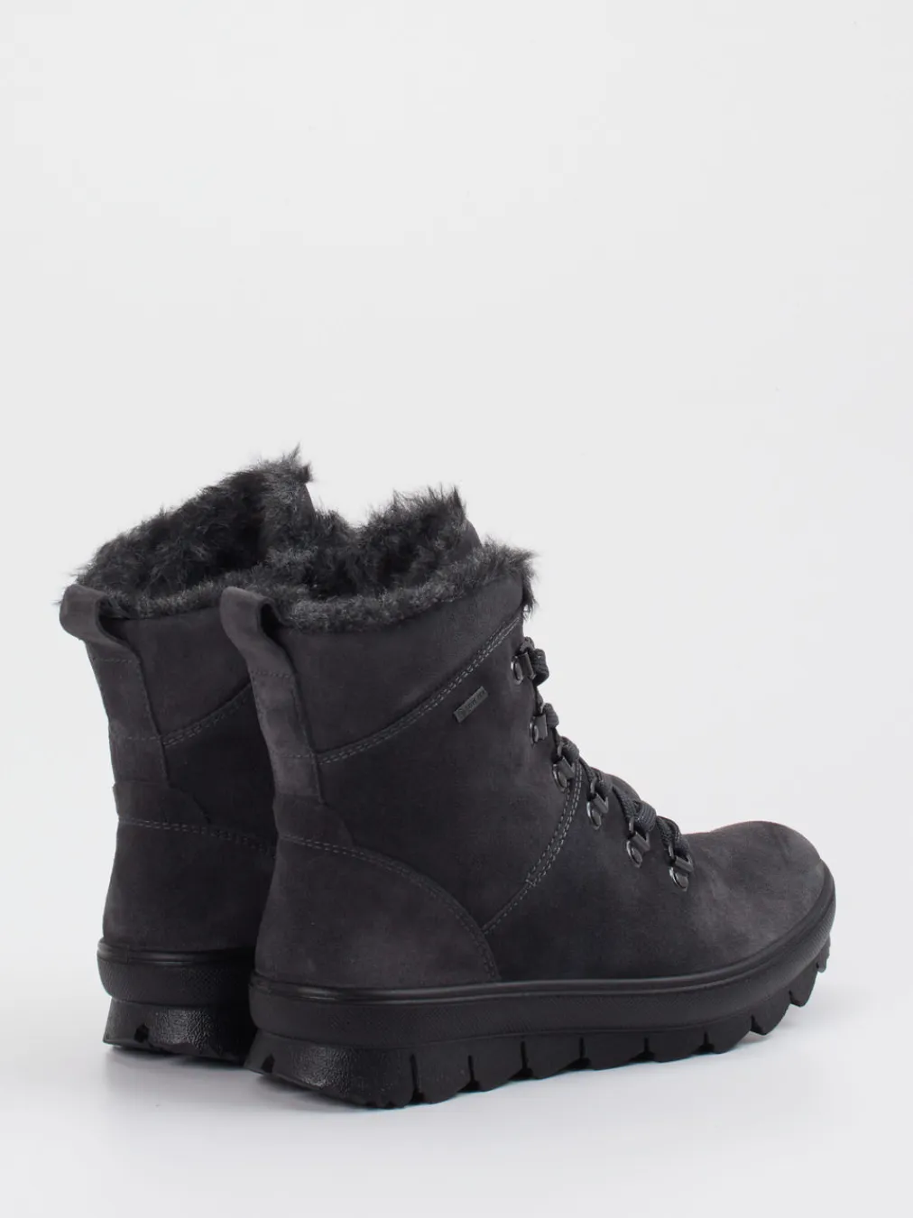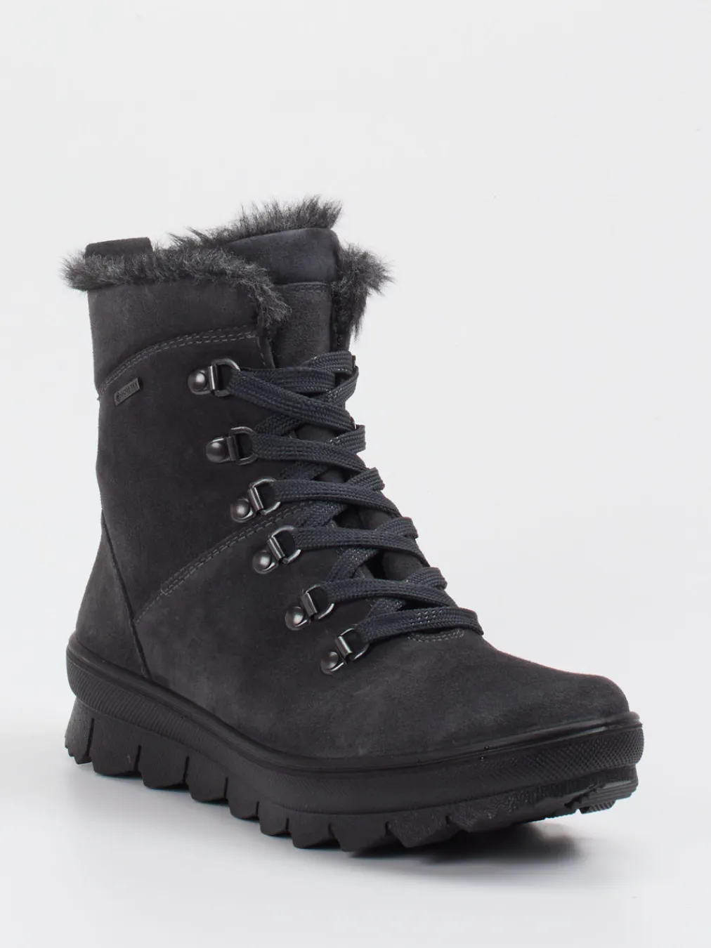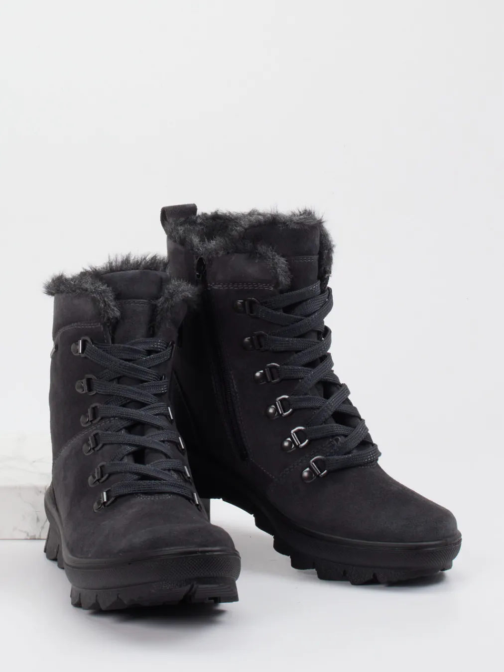 Diese Stiefelette von Legero überzeugt mit wetterfestem Veloursleder, warmem Innenfutter und einer rutschfesten PU-Sohle – ideal für funktionale Styles im Winter.