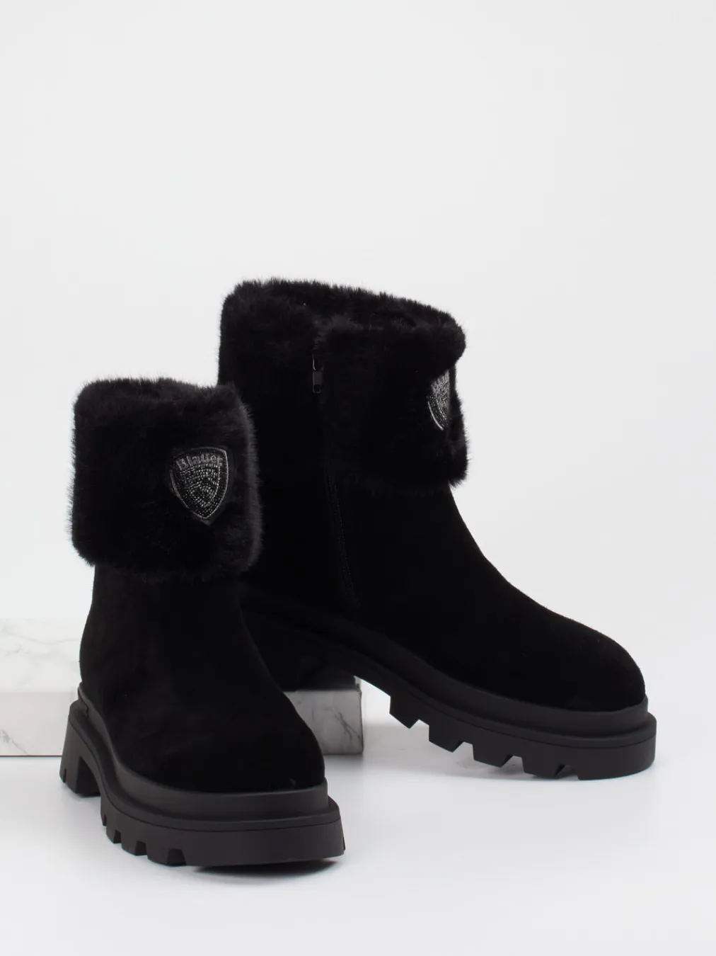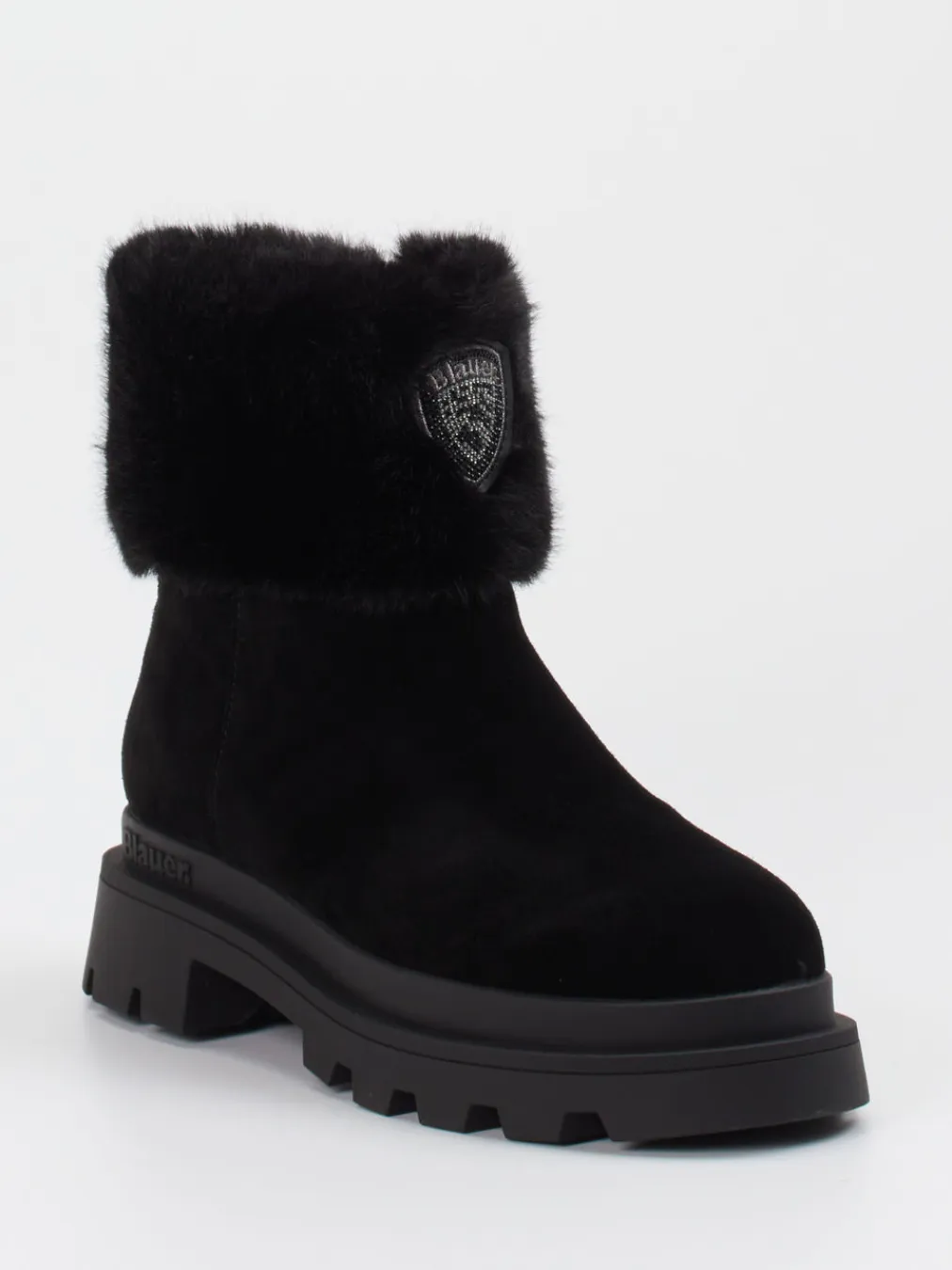 Die Marke Blauer präsentiert eine moderne Damen-Stiefelette aus hochwertigem Veloursleder.