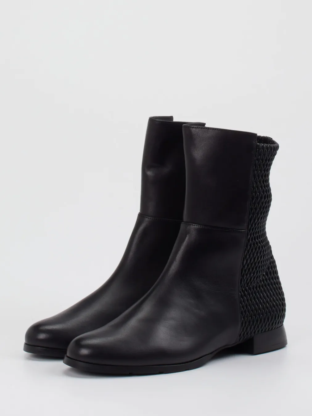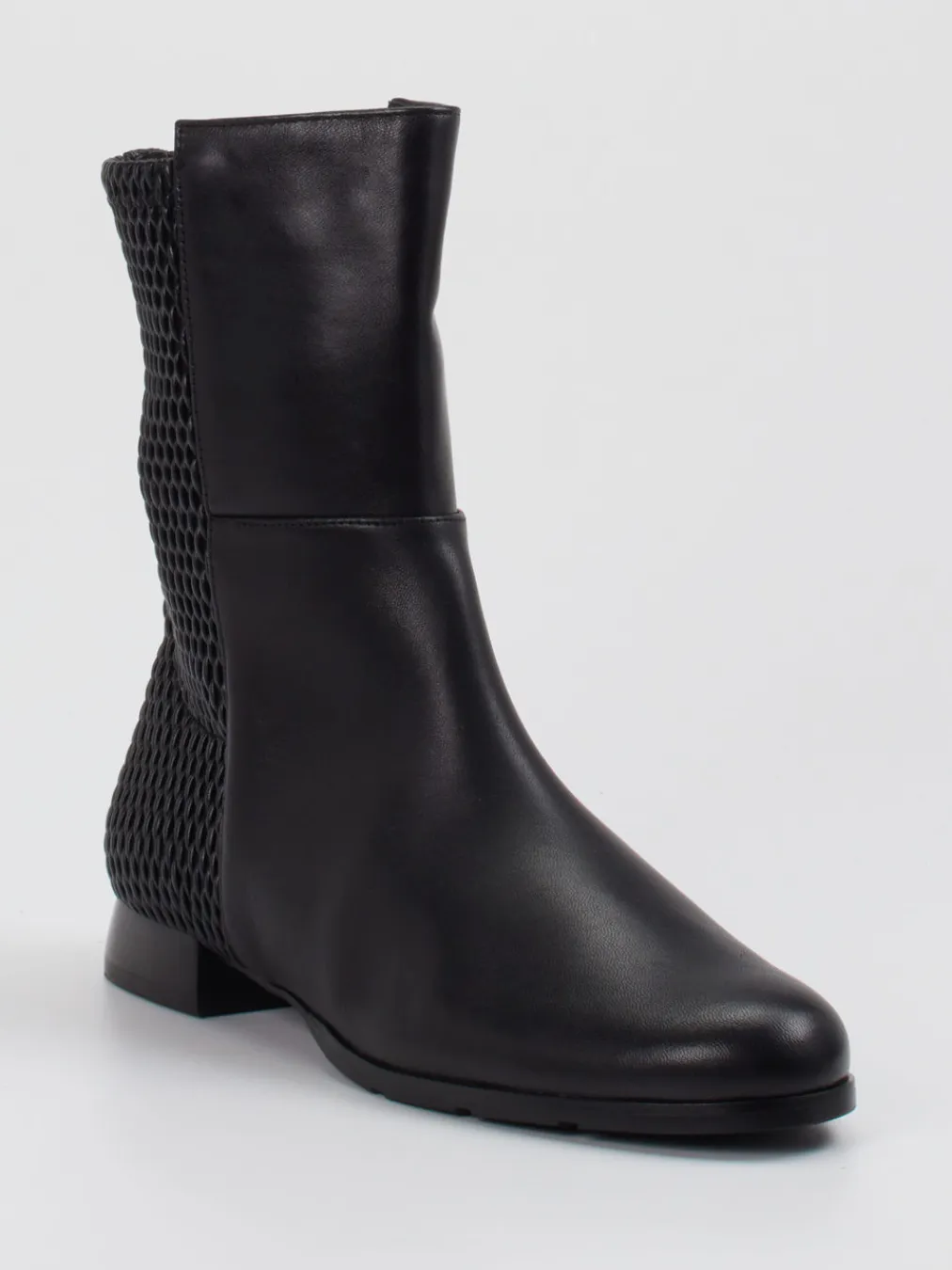 Strukturiertes Kalbleder trifft auf urbanes Design: Diese Stiefelette vereint hohen Tragekomfort mit stilvollem Textur-Mix in Ton-in-Ton-Optik.