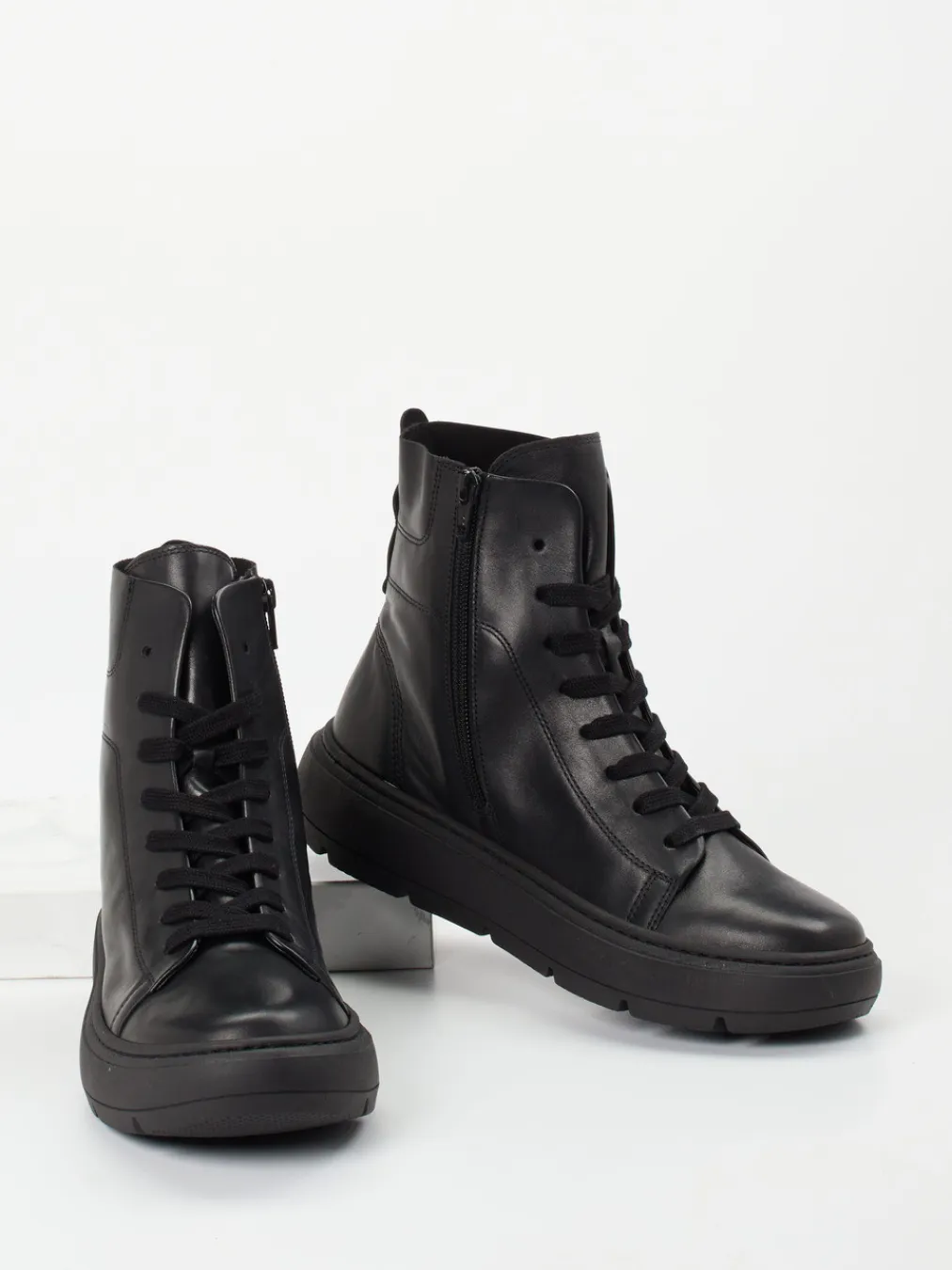 Urban Style für Alltag und Büro.Diese Schnürstiefelette von Gabor überzeugt durch klaren Minimalismus und robusten Komfort. Ob für den morgendlichen Arbeitsweg oder entspannte City-Tage – das butterweiche Kalbleder mit matter Oberfläche verleiht dem schwarzen High-Top-Modell einen edlen Look. Die Kombination aus Schnürung und seitlichem Reißverschluss ermöglicht ein unkompliziertes Handling, während innen Microfaserfutter und Wechselfußbett für Wohlgefühl sorgen. Eine markant profilierte Gummisohle unterstützt mit 3 cm Plateauhöhe und 4 cm Absatz den angesagten Chunky-Trend – funktional und stilbewusst zugleich. Kombiniert mit dunklem Wollmantel oder cleaner Hose entsteht ein ruhiger, urbaner Look. Gabor vereint zeitloses Design mit komfortorientierter Funktionalität.