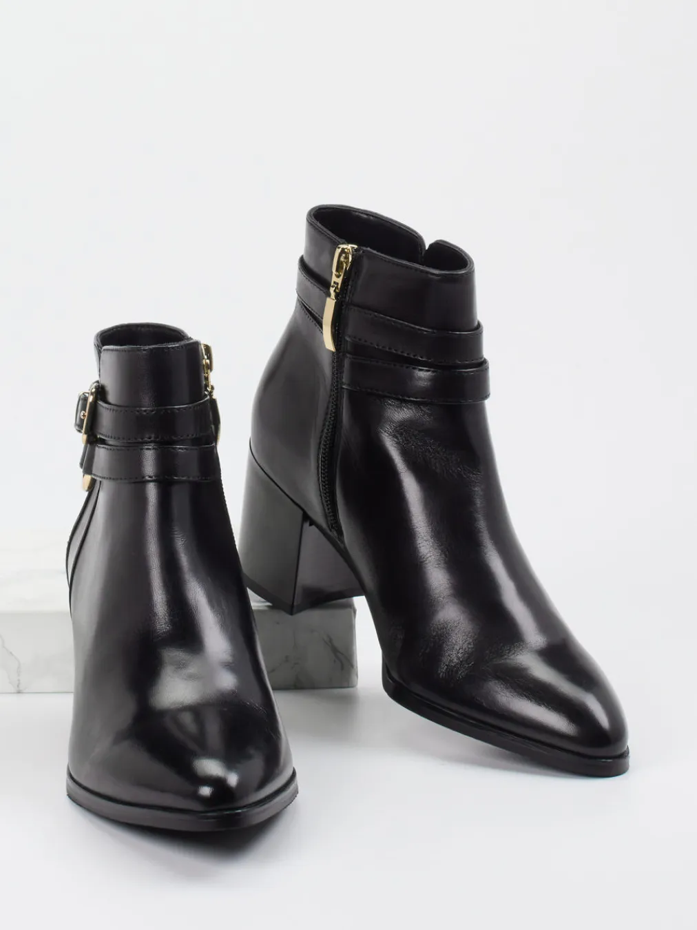Diese glänzenden Ankle Boots vereinen hochwertiges Kalbleder mit einer zeitlosen Silhouette und edlen Details. Die perfekte Wahl für stilvolle Auftritte im Alltag und Büro.