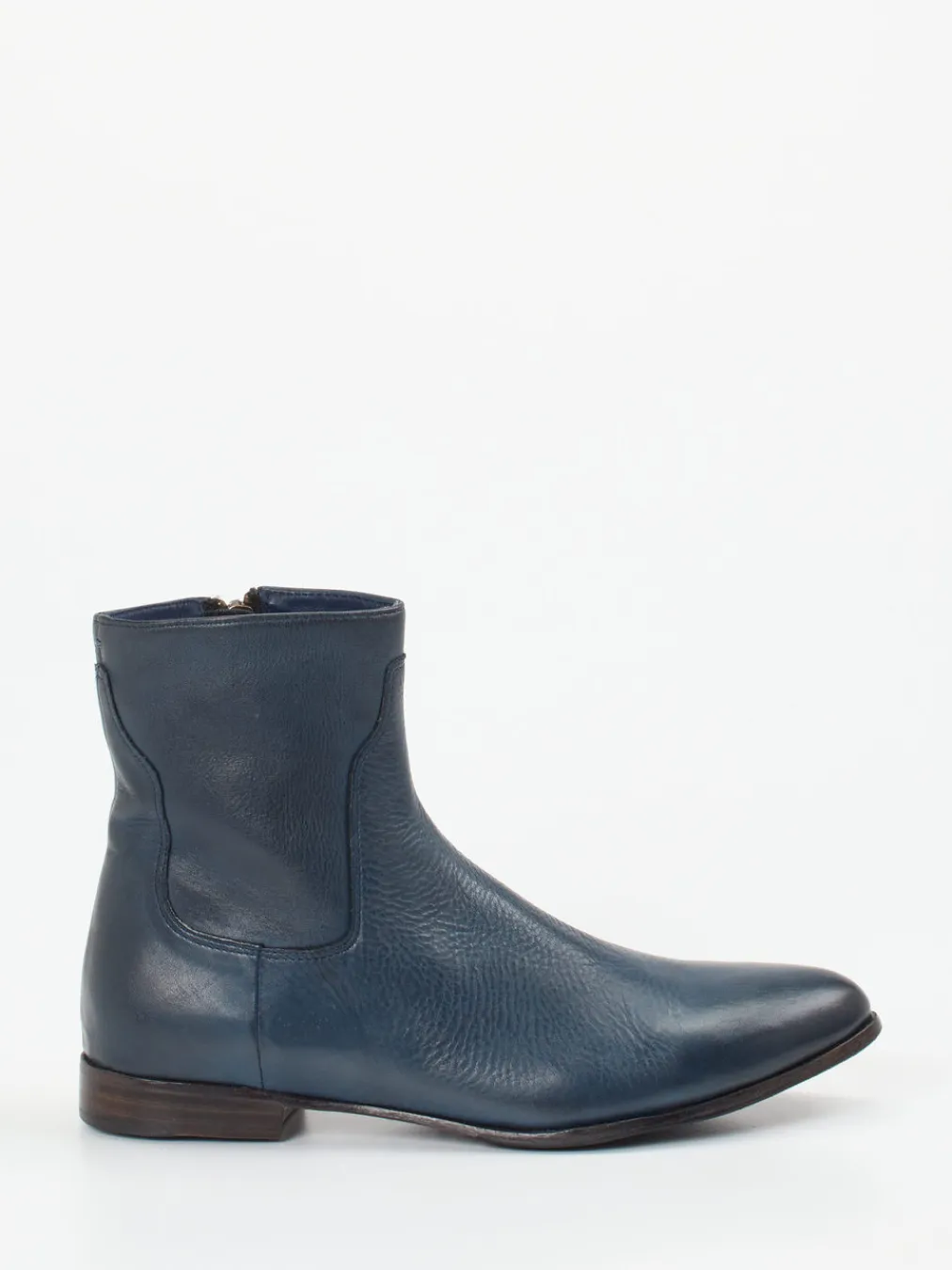 Fein genarbtes Lammleder und ein schlanker Schnitt verleihen dieser dunkelblauen Stiefelette von Rebecca White eine moderne Eleganz für Business und Alltag.