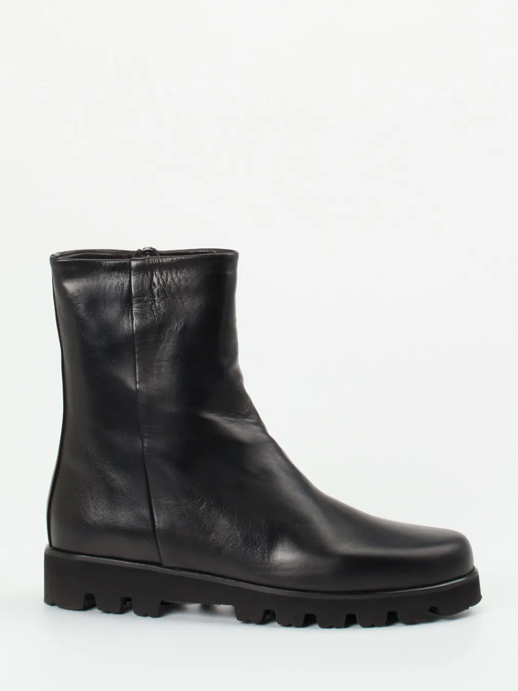 Ideal für bewegte Tage in der Stadt überzeugt das schwarze Modell durch weiches Lammleder mit matter Haptik. Die geradlinige Silhouette, dezente Glanzpartien an der Ferse und der seitliche Ton-in-Ton-Reißverschluss fügen sich harmonisch in das reduzierte Design. Die betonte Leichtzellsohle mit ausgeprägtem Profil sorgt für Stabilität und passt perfekt zu Outdoor-Elementen wie Oversized-Mantel oder grober Strick. Trendthemen wie Quiet Luxury und Heavy Sole werden dabei subtil interpretiert.