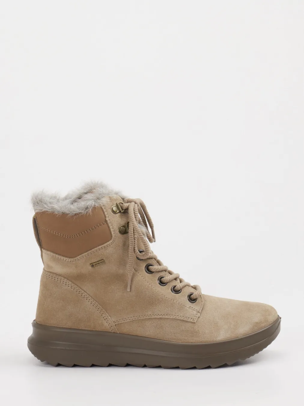 Wärme trifft Funktion im Winter-Alltag. Legero präsentiert robuste Damen-Stiefeletten für Herbst und Winter. Ob beim Stadtspaziergang oder auf winterlichen Pfaden – das wind- und wasserdichte Obermaterial mit genarbter Veloursanmutung schützt zuverlässig vor Kälte und Nässe. Das beigefarbene Design wird durch mittelbraune und hellgraue Kontraste ergänzt, während sichtbare Ziernähte und Metallösen in Antikoptik dezente Akzente setzen. Reißverschluss und Schnürung sorgen für komfortables An- und Ausziehen. Das weiche Futter aus grauem Kunstfell bietet wohlige Wärme, die PU-Sohle mit tiefem Grip-Muster gibt Traktion. Inspiriert vom Outdoor-Stil, passt der Schuh ideal zu Thermo-Leggings und Steppjacke. Verlässlicher Komfort mit funktionalem Anspruch – mit Legero stilvoll durch die kalte Jahreszeit.