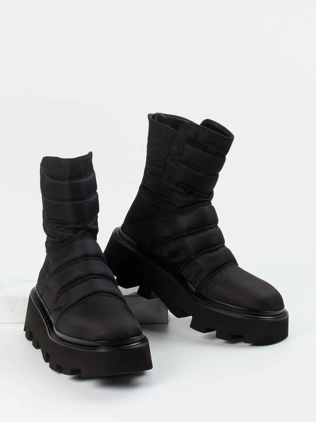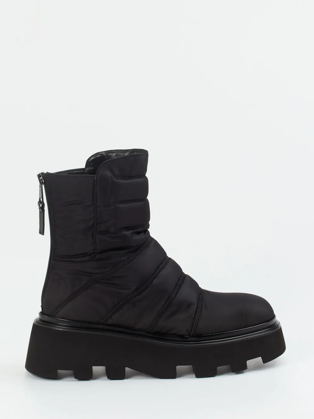 Mit ihrer schwarzen Stepp-Textur in matt glänzendem Nylon erfüllt sie weit mehr als funktionale Ansprüche: Die chunky Silhouette mit tonigem Reißverschluss hinten und 5 cm hoher Plateausohle aus profilierter Leichtzell-Gummimischung bringt Streetwear-Charme in den Winteralltag. Das wärmende Leder-/Textilfutter ergänzt den Look stilvoll und erhöht den Tragekomfort an frostigen Tagen. Die Puffer-Optik passt perfekt zu aktuellen Gorpcore- und AW24-Trends und harmoniert ideal mit Steppjacken oder Thermoleggings.