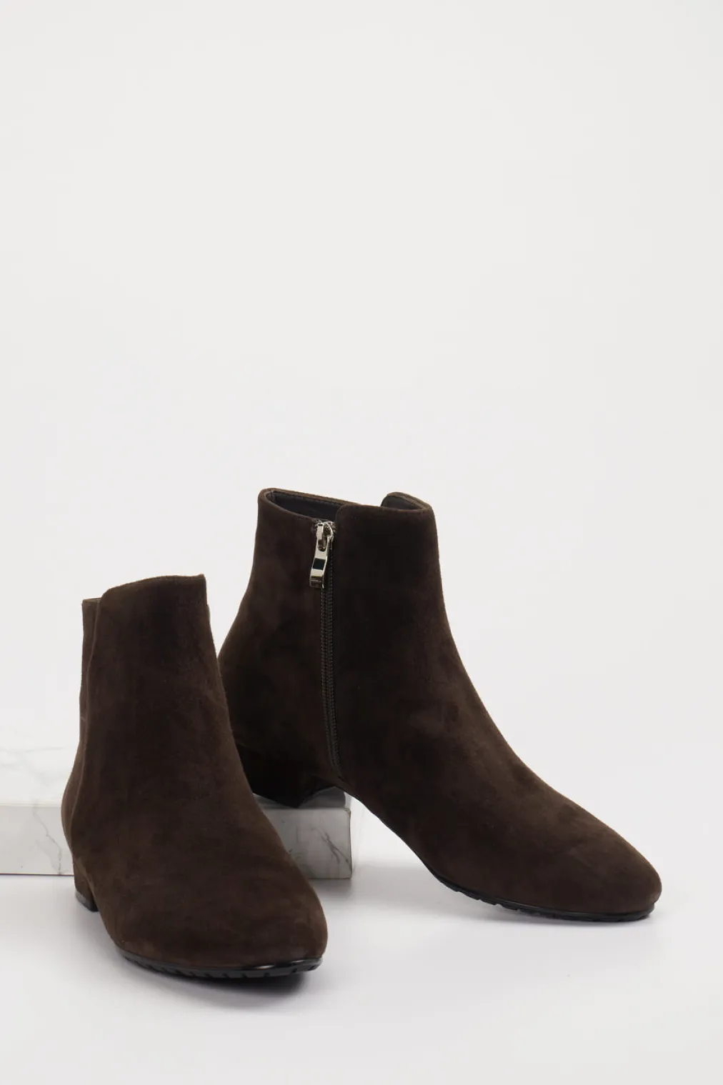 Reduzierter Chic für den Alltag.Die Marke Di Lauro präsentiert hier klassische Damen-Stiefeletten mit zeitlosem Charakter. Ideal für Büro- oder Alltagslooks, überzeugen die Ankle Boots durch dunkelbraunes Veloursleder mit matter Oberfläche. Die klar geschwungene Silhouette wirkt durch Ton-in-Ton-Nähte und einen dezenten, silberfarbenen Innenreißverschluss besonders edel. Eine flache Gummisohle mit leichtem Profil sichert komfortablen Halt auf herbstlichem Untergrund. Modisch orientiert sich dieses Modell am Trend „Quiet Luxury“ und greift die aktuelle Rückkehr des Velours-Stils auf. Besonders harmonisch wirkt die Kombination mit minimalistischen Outfits in gedeckten Tönen. Ein vielseitiger Allrounder mit zurückhaltender Eleganz und hochwertiger Haptik.