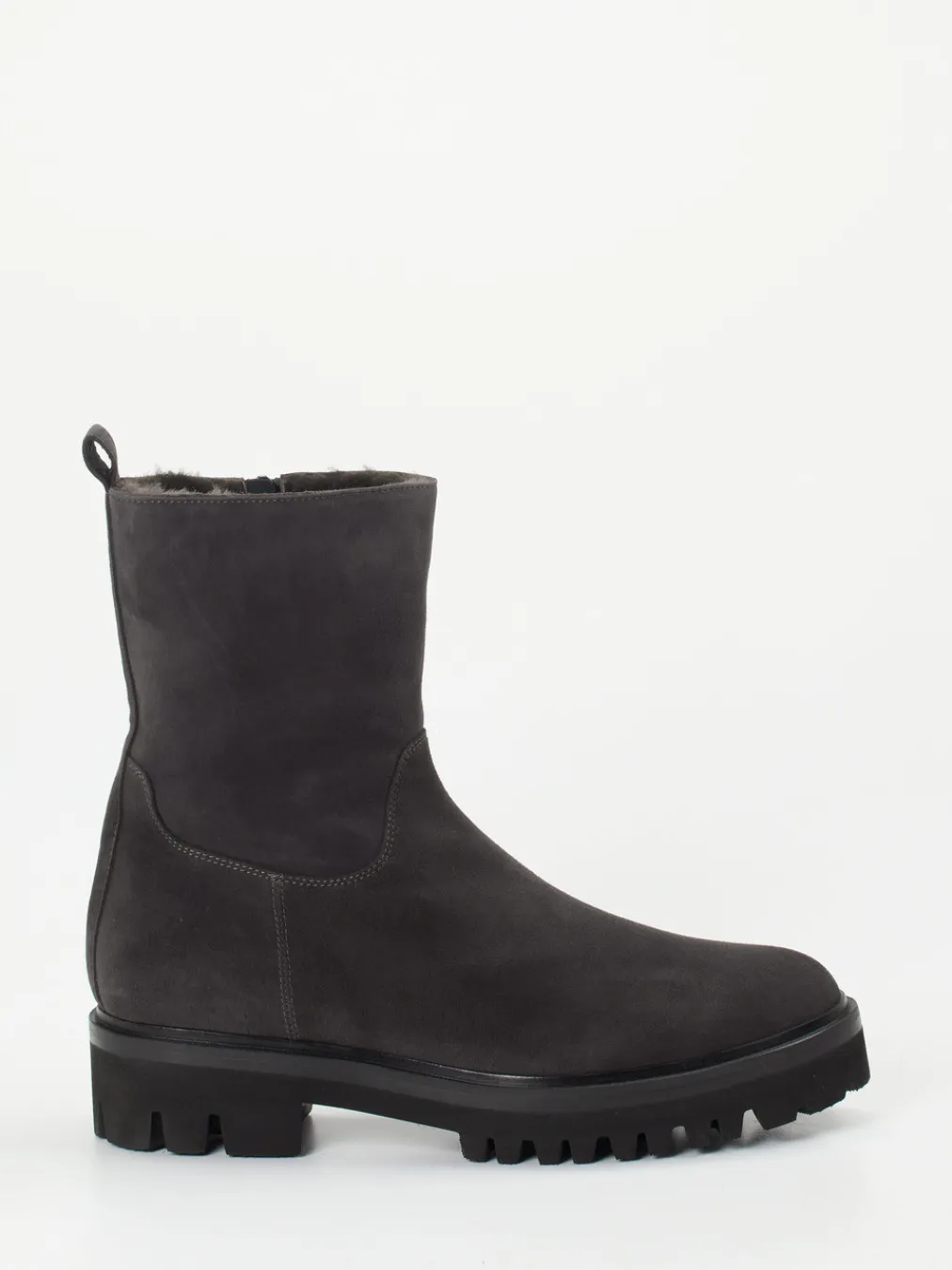 Die Veloursleder-Stiefelette von Truman’s überzeugt mit wärmendem Lammfellfutter und rutschfester Profilsohle – perfekt für stilvolle Winterlooks mit funktionalem Anspruch.