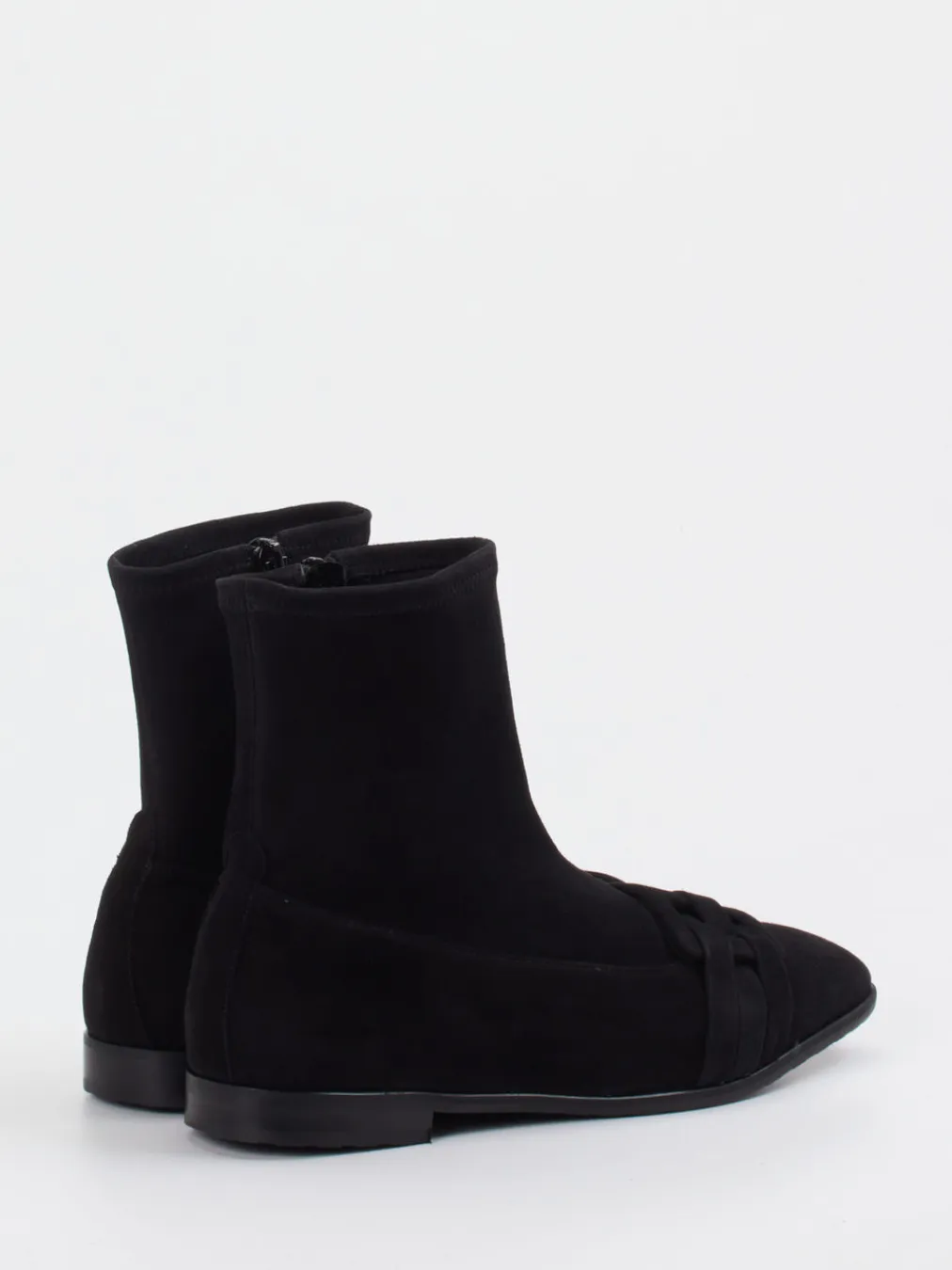Diese elegante Damen-Stiefelette vereint hochwertiges Veloursleder mit einem minimalistischen Design – ideal für stilbewusste Looks im Herbst und Winter.