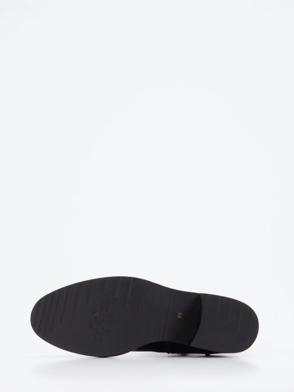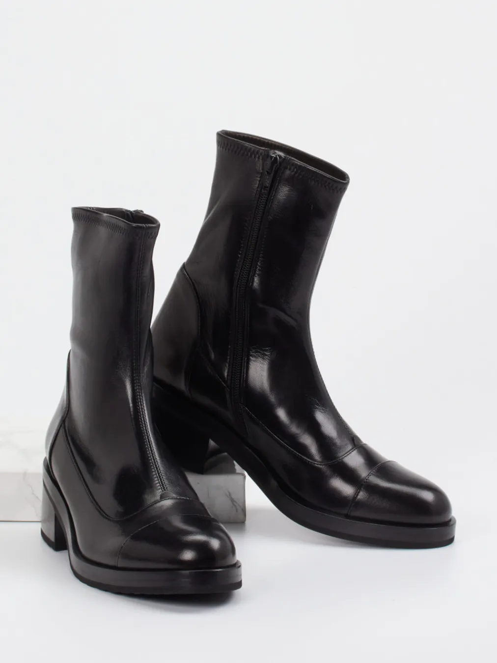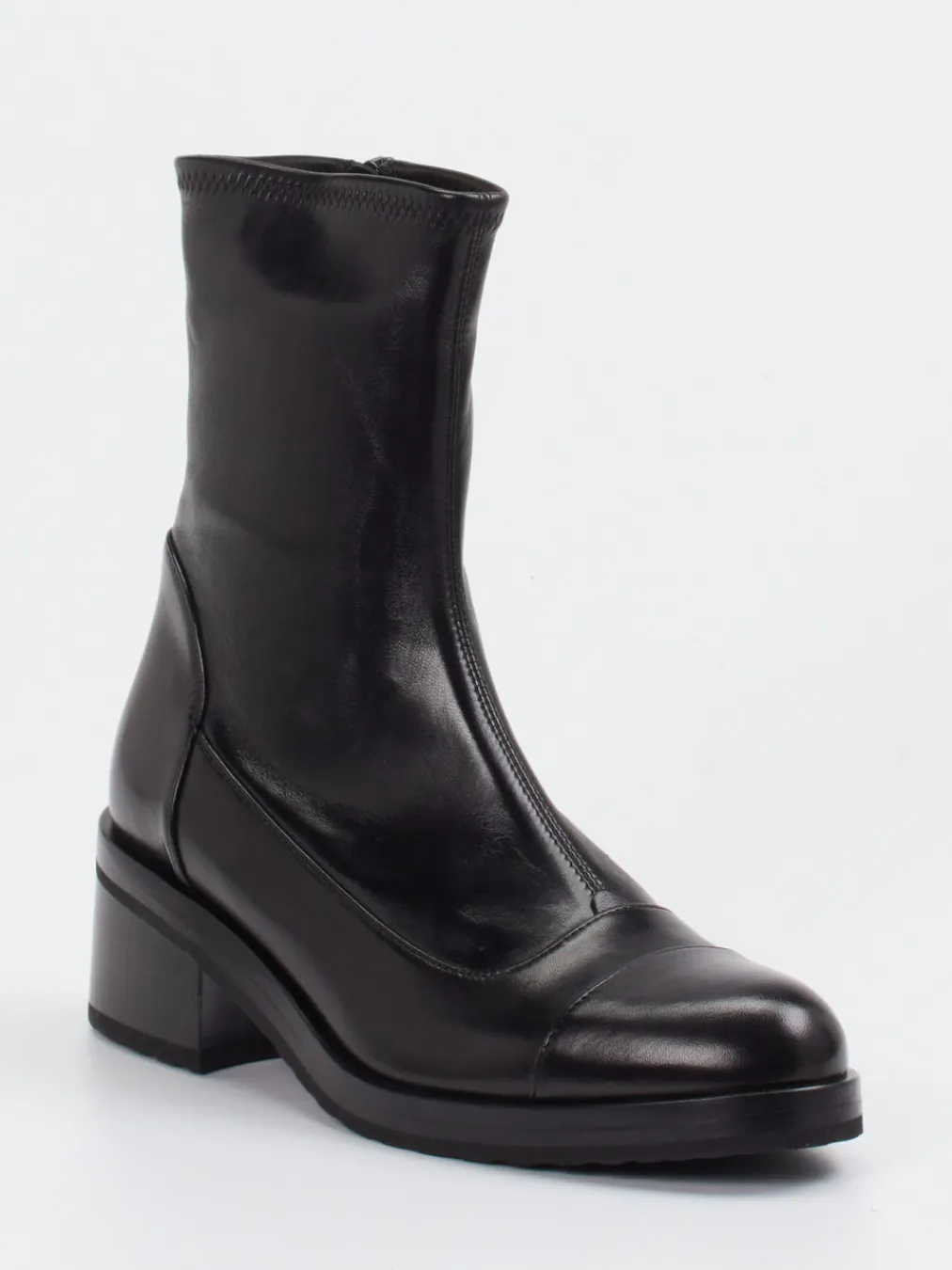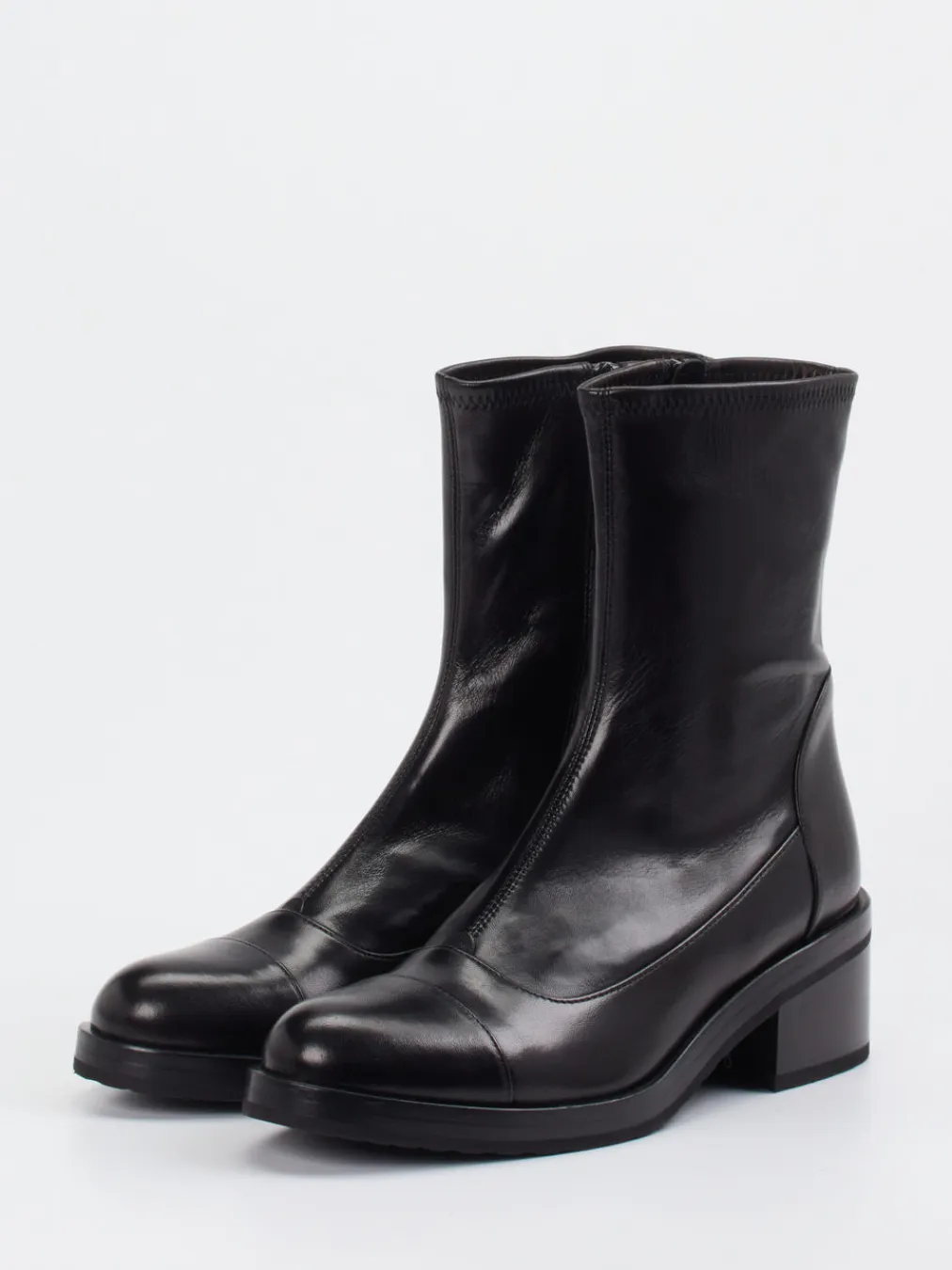 Puristische Eleganz für urbane Looks.Truman’s interpretiert die Damen-Stiefelette neu: klar, klassisch, luxuriös. Die samtig matte Oberfläche des schwarzen Veloursleders betont die schlanke, knöchelhohe Form und lässt die schlichte Ästhetik dieser Stiefelette stark zur Geltung kommen. Verdeckte Ton-in-Ton-Nähte, ein innenliegender Reißverschluss und ein 5,5 cm hoher Blockabsatz geben dem Design moderne Klarheit. Die profilierte Gummisohle unterstützt den dezenten Komfortanspruch ebenso wie das Innenfutter aus Lammnappa. Inspiriert vom Stilcode „Quiet Luxury“ eignet sich das Modell für anspruchsvolle Office-Looks wie lässige Everyday-Outfits. Kombiniert mit Wollmantel und Lederaccessoires entsteht ein rundum stimmiger Auftritt. Reduziert im Design, hochwertig in der Verarbeitung – Truman’s Handschrift in Reinform.