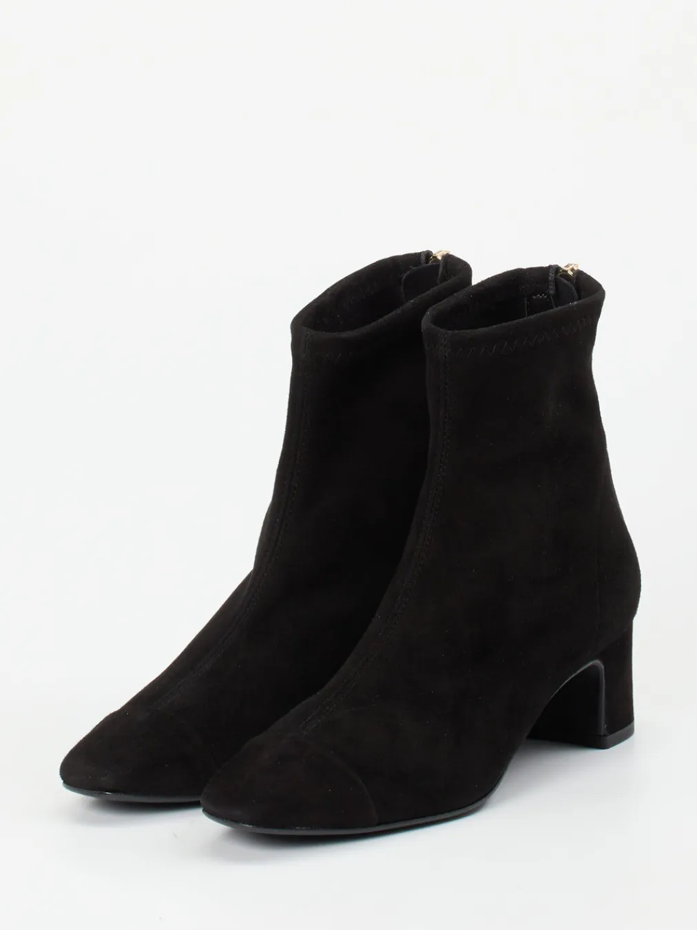 Die elegante Silhouette kombiniert mit Stretch-Komfort und edlem Veloursleder-Look bildet eine moderne Interpretation des klassischen Ankle Boots.