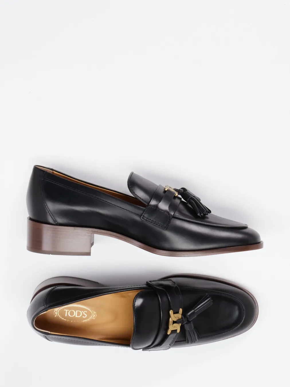 Hochwertiges Kalbleder in glänzender Ausführung, kombiniert mit zeitlosen Details wie Quasten und goldfarbener Schließe – ein Loafer, der Eleganz und Understatement vereint.