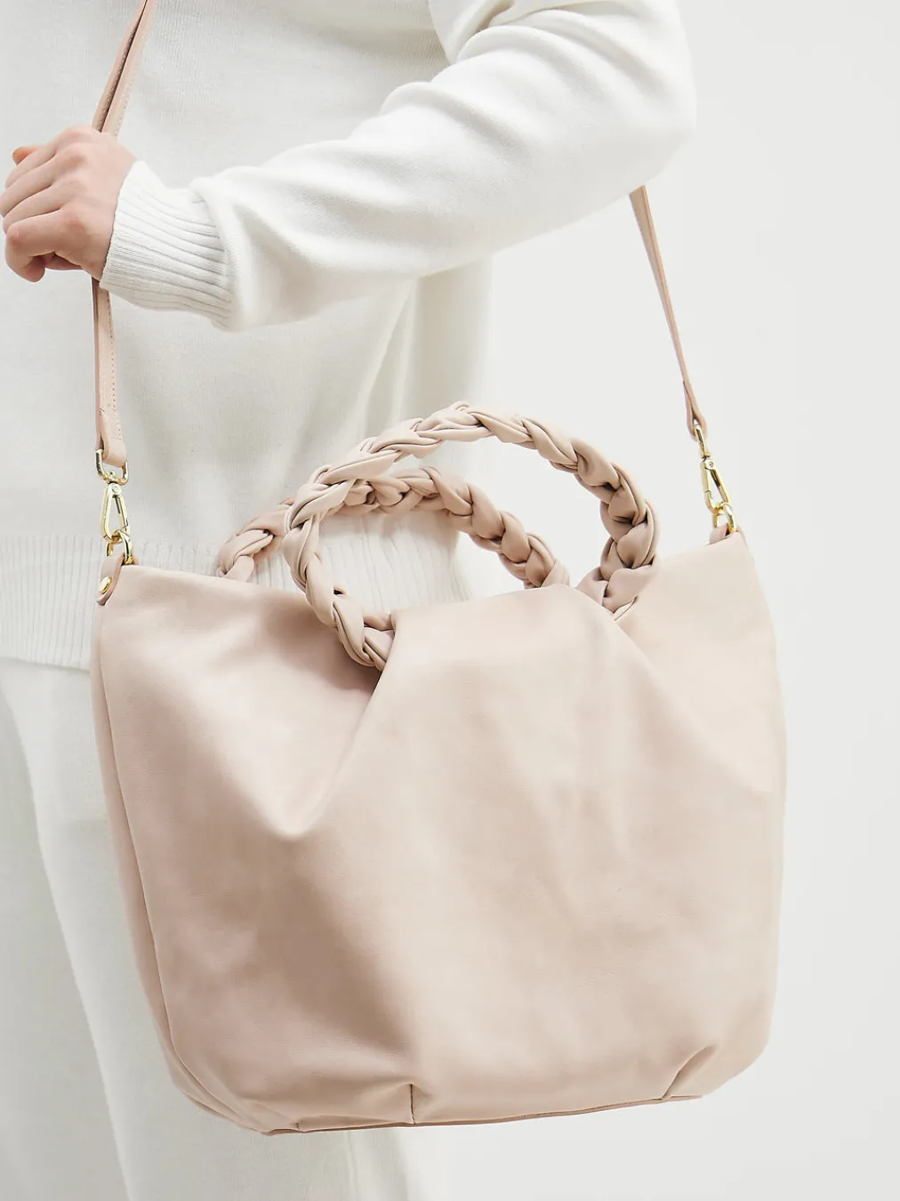 Weiches Kalbleder in zartem Rosé, kombiniert mit femininer Übersilhouette und geflochtenen Details – Konstantin Starke präsentiert eine Business-taugliche Tasche im Geist von Quiet Luxury.
