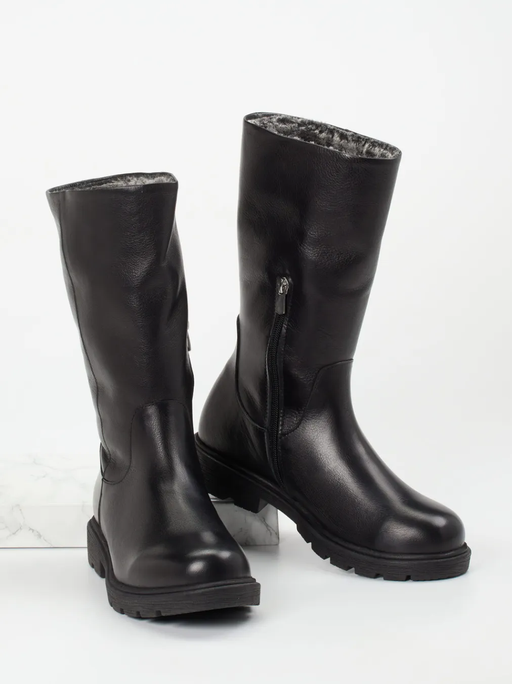 Minimales Design, maximale Alltagstauglichkeit.Andrea Conti präsentiert mit dieser Damen-Stiefelette einen robusten Winterstiefel für Freizeit und Outdoor. Ideal für kalte Wintertage in Stadt und Natur: Das leicht genarbte Kalbleder in klassischem Schwarz trifft auf ein warmes Innenfutter aus grauer Textilfaser. Die gerade Schaftform, ein funktionaler Reißverschluss und die profilierte Gummisohle bieten guten Halt und hohen Tragekomfort. Ganz im Stil von „Quiet Luxury“ und „Functional Footwear“ überzeugt der cleane Look mit Ton-in-Ton-Nähten und dezentem Utility-Charakter. Kombiniert mit Thermo-Leggings und Wollmantel entsteht ein stilvolles Alltagsoutfit. Ein komfortfokussierter Winterbegleiter – formstabil, schnörkellos und wettergerecht.