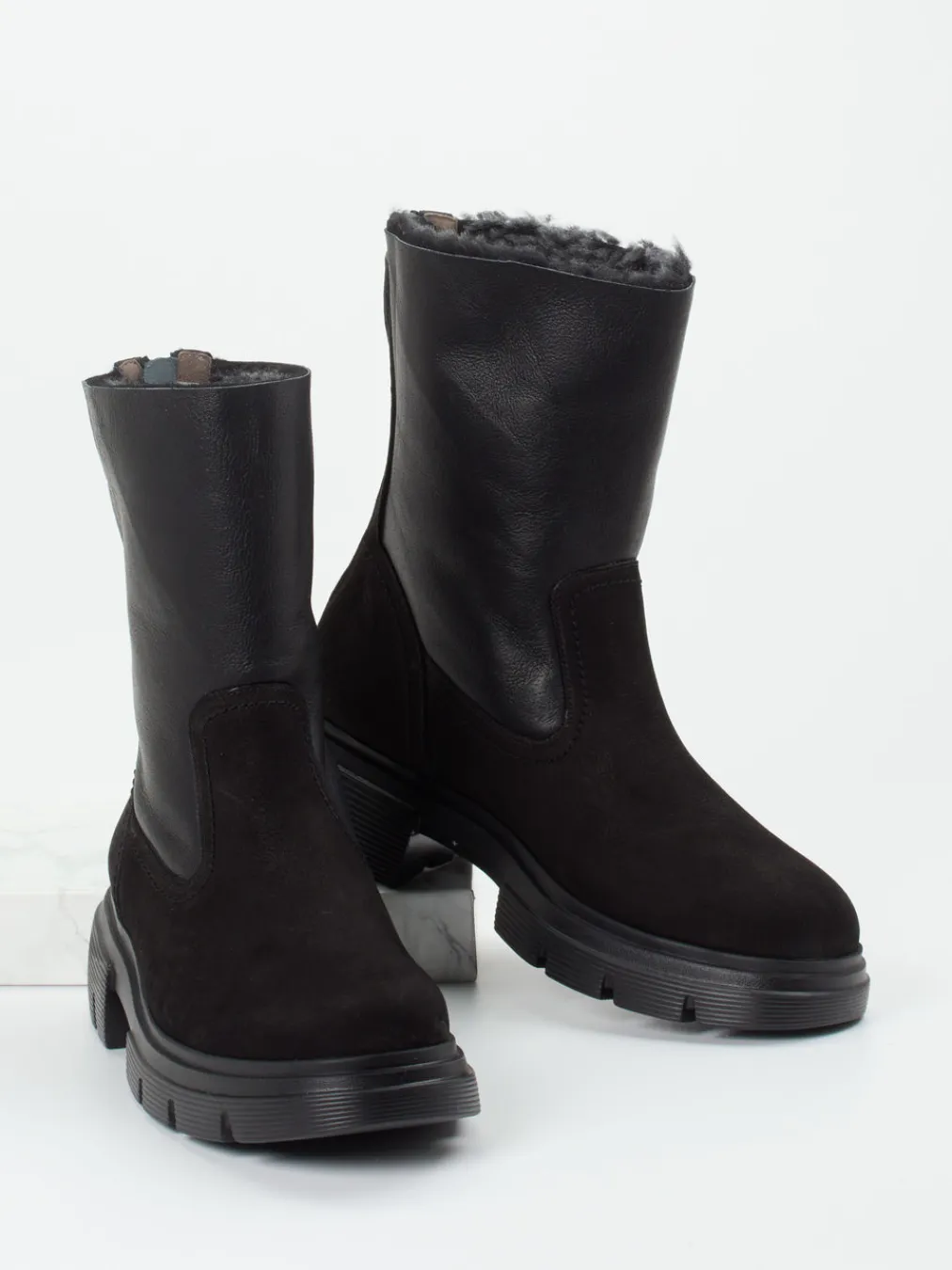Das samtig angeschliffene Nubukleder und das warme Lammfellfutter machen diesen Winterstiefel zu einer robust-eleganten Wahl für kalte Tage. Die markante Chunky-Sohle trifft den Nerv zeitgemäßer Urban Looks.
