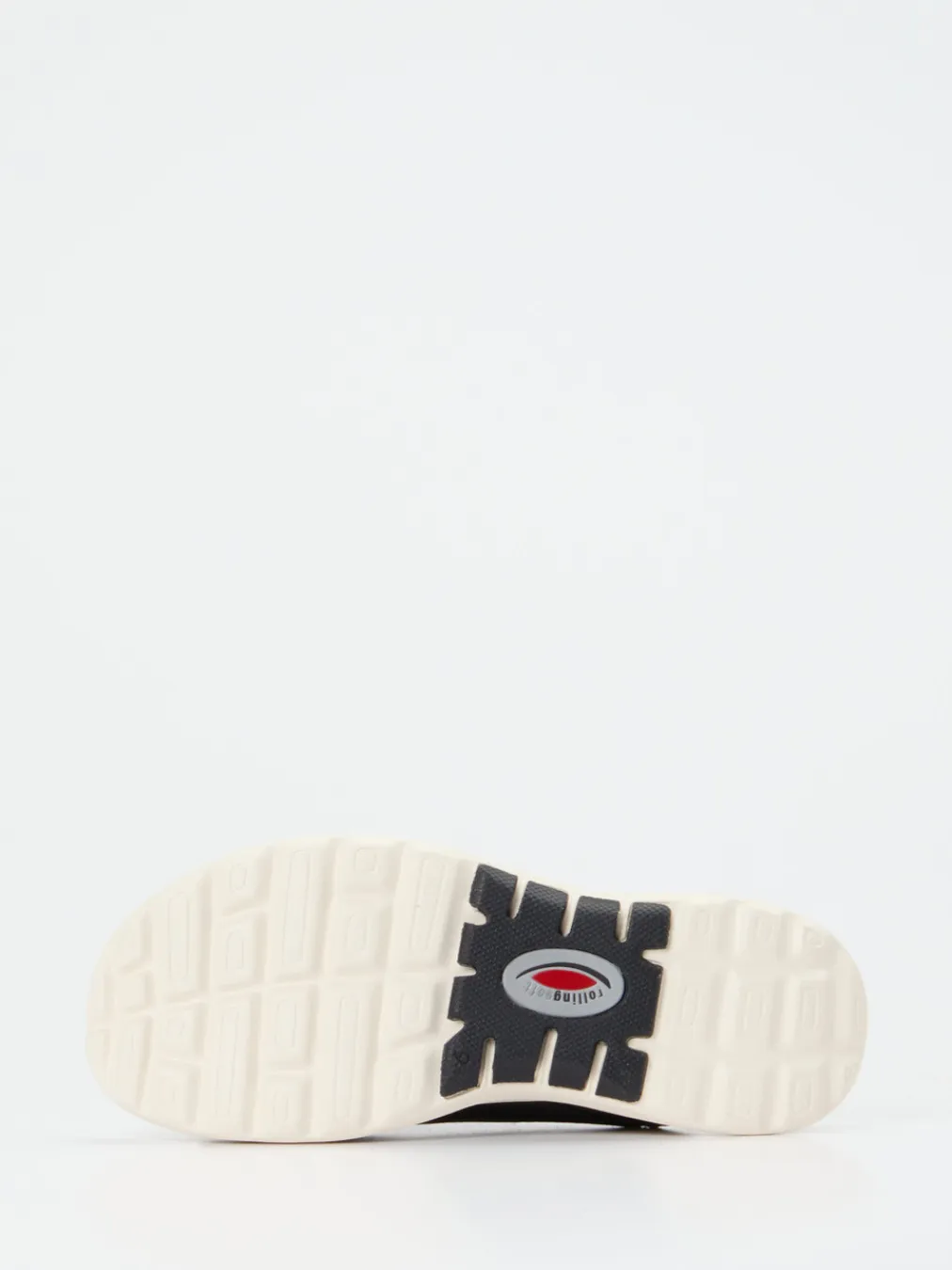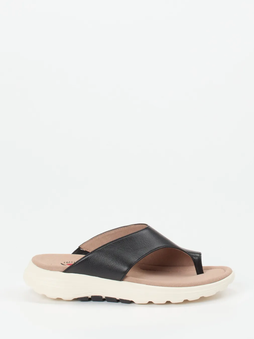 Minimalismus trifft Komfort.Gabor Comfort präsentiert mit dieser Damen-Sandale einen besonders komfortablen Zehentrenner. Ideal für entspannte Sommertage bietet das Modell durch seine gepolsterte Innensohle und die ergonomisch geschwungene Laufsohle ein angenehmes Tragegefühl. Das schwarze Kalbleder mit matter Oberfläche verleiht dem Design eine zeitlose Eleganz, während die helle, profilierte Synthetiksohle für Stabilität und Kontraste sorgt. Der offene Schnitt mit asymmetrischem Riemen folgt klaren Linien des Minimalismus. Durch bequemes Hineinschlüpfen wird die Alltagstauglichkeit zusätzlich erhöht. Perfekte Ergänzung zu Leinenhose oder luftiger Sommerbluse. Ein Zusammenspiel aus bewährter Gabor-Qualität und moderner Komfortästhetik.