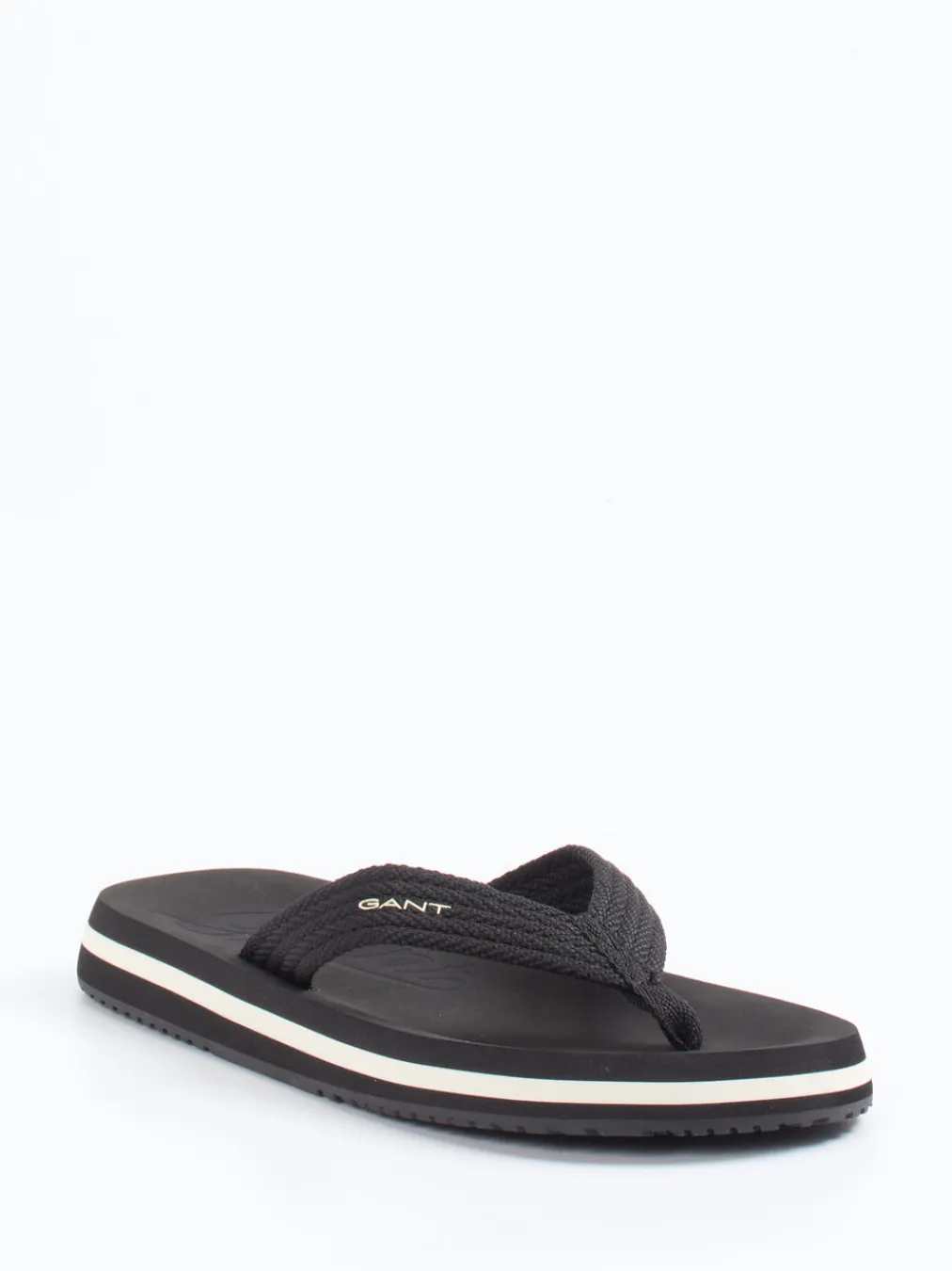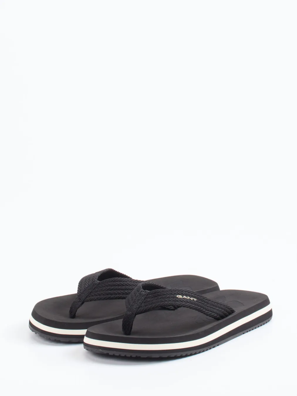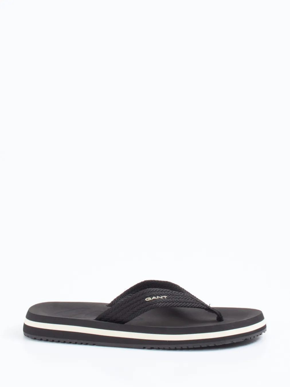 Sommerlaune satt: cleanes Design mit Kontrastakzent. Die Herren-Zehentrenner von Gant überzeugen mit einem gewebten Textilriemen und einer schwarzen EVA-Sohle. Ideal für entspannte Freizeitmomente: Die flache Silhouette, die rutschfeste, profilierte Gummilaufsohle und der weiße Kontraststreifen in der Zwischensohle sorgen für Komfort und visuelle Leichtigkeit. Eine dezente Logo-Prägung auf der Innensohle und am Riemen unterstreicht den puristischen Stil. Perfekt in Kombination mit Badeshorts oder Chinos bei sommerlichen Temperaturen. Maximal lässig, minimal im Auftritt – Gant setzt auf entspannte Klarheit.